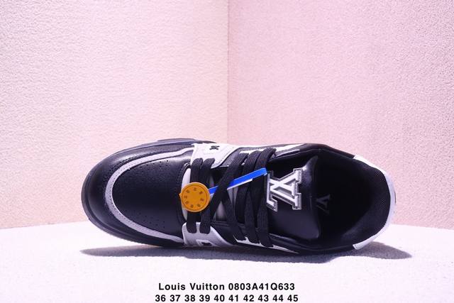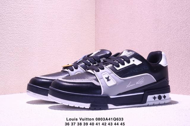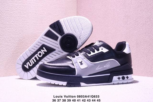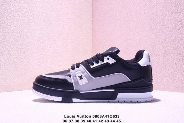 Louis Vuitton ~ Black and gray, made in Guangdong, high cost performance, made of leather upper, lambskin lining and deodorizing sea glass footbed, hollow rubber craftsmanship, external wear-resistant rubber outsole, new Lv Louis Vuitton Louis Vuitton Remarque Low classic low-top lace-up casual sports all-match sneakers