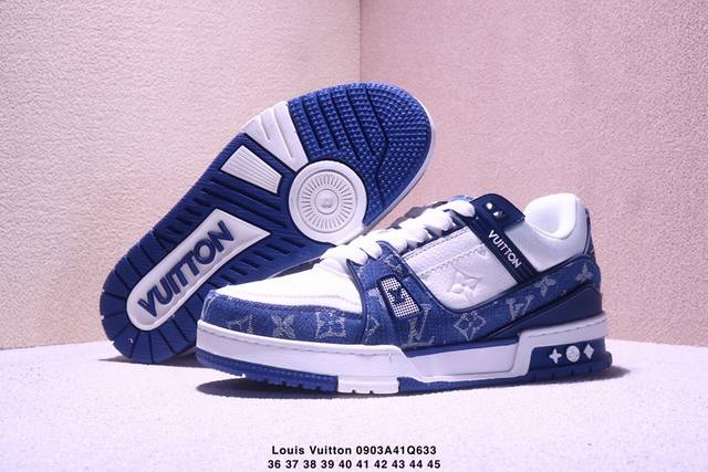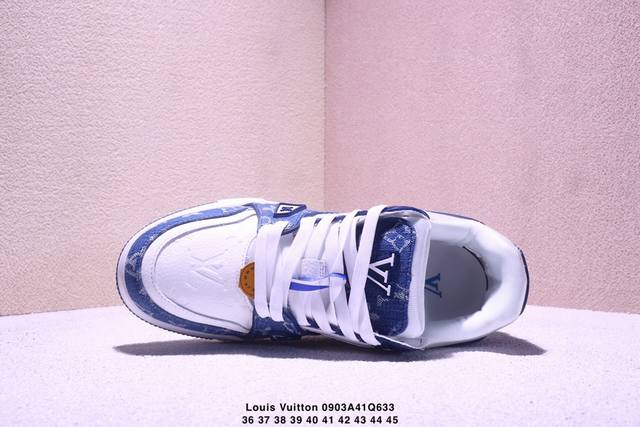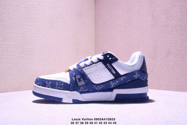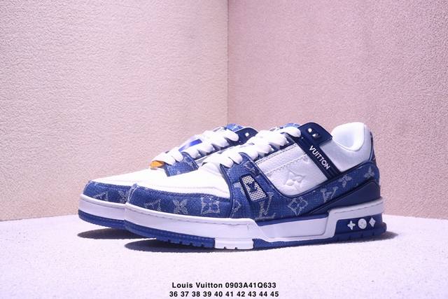 Louis Vuitton ~ Denim blue, made in Guangdong, high cost-effective, made of leather upper, lambskin lining and deodorizing sea glass footbed, hollow rubber craftsmanship, external wear-resistant rubber outsole. Brand new Lv Louis Vuitton Remarque Low classic low-top lace-up casual sports all-match sneakers
