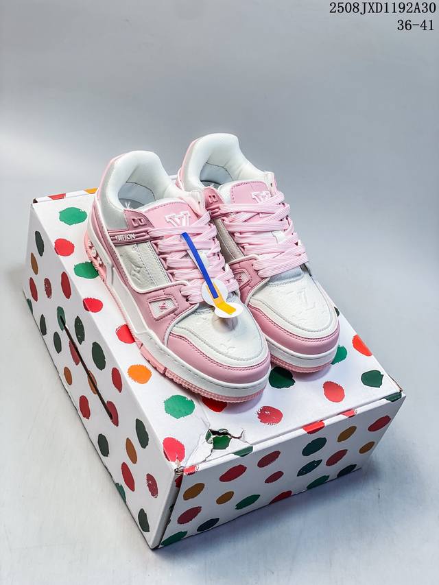 Louis Vuitton is made in Guangdong, with leather upper material, full lambskin lining and deodorizing sea glass footbed, and external wear-resistant rubber outsole. The new LV Louis Vuitton Remarque Low classic low-top lace-up casual sports all-match sneakers