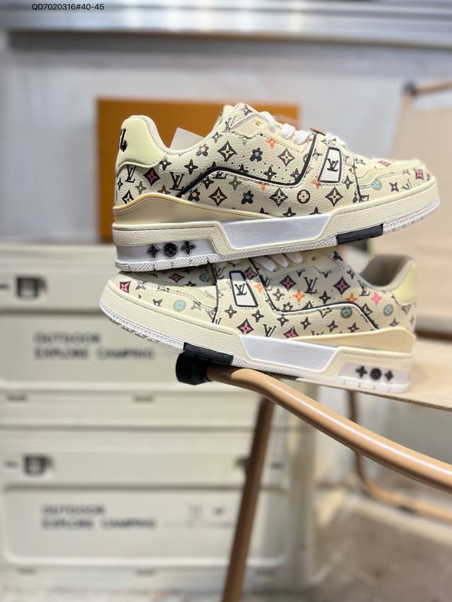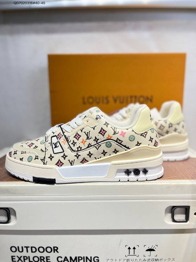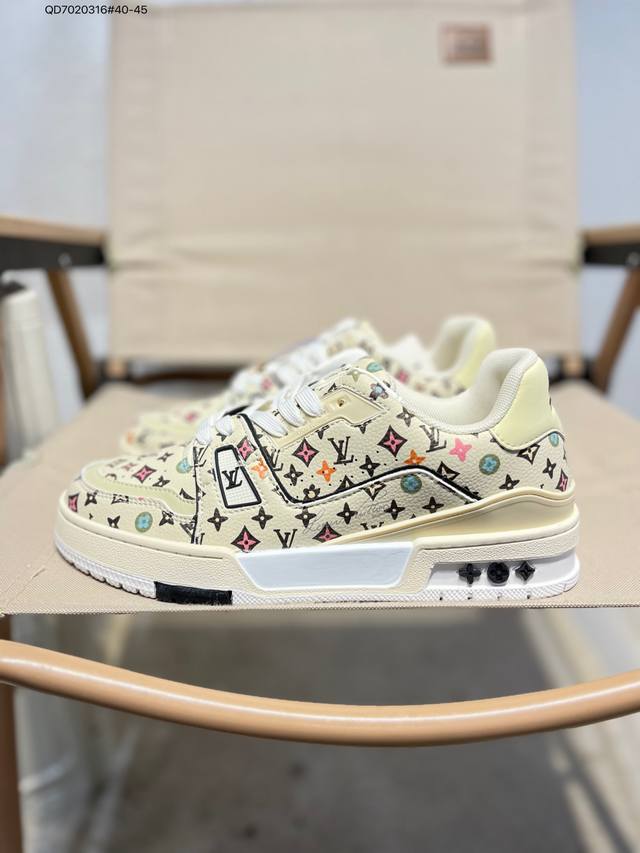 Louis Vuitton Lv Louis Vuitton sneakers DDD New Lv Trainer latest colorway sneakers L brand basketball style sneakers. This shoe is designed by artistic director Virgil Abloh. Insole made of microfiber and breathable British mesh Qd7020316#40-45 DDD