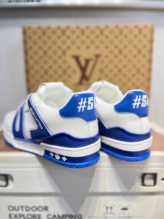 Louis Vuitton Lv Louis Vuitton sneakers DDD New Lv Trainer latest colorway sneakers, L brand basketball style sneakers. This shoe is designed by artistic director Virgil Abloh. The insole is made of microfiber material and breathable British mesh. Qe7042725#36-46 DDD