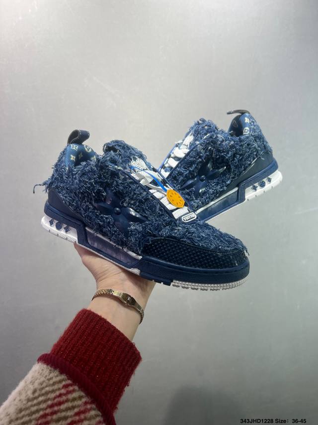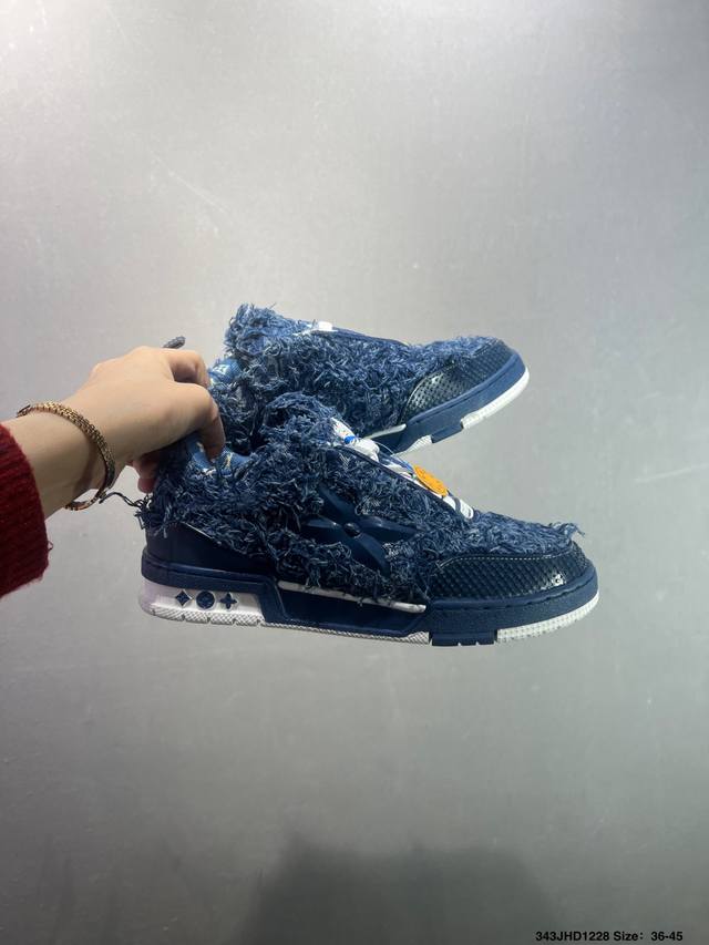 Louis Vuitton Lv Louis Vuitton sneakers DDD New Lv Trainer latest colorway sneakers, L brand basketball style sneakers. This shoe was designed by artistic director Virgil Abloh. The insole is made of microfiber material and breathable British mesh. Details are consistent with the original. Size: 36-45. As shown in the picture. ID: 343Jhd1228 DDD