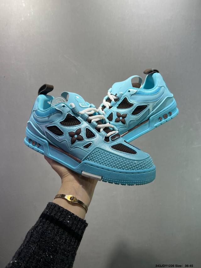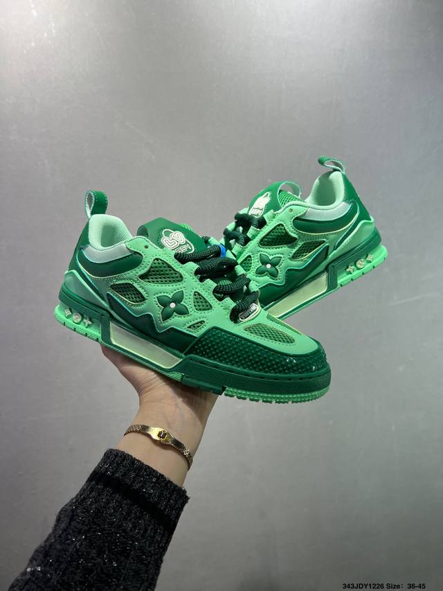 Louis Vuitton Lv Louis Vuitton sneakers DDD New Lv Trainer latest colorway sneakers, L brand basketball style sneakers. This shoe was designed by artistic director Virgil Abloh. The insole is made of microfiber material and breathable British mesh. Details are consistent with the original. Size: 36-45. As shown in the picture. ID: 343Jdy1226 DDD