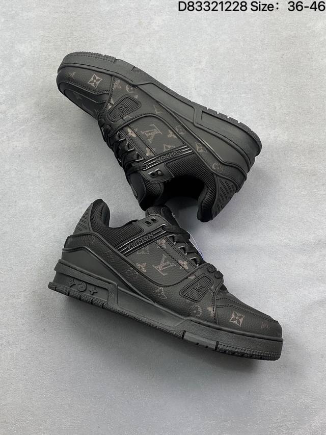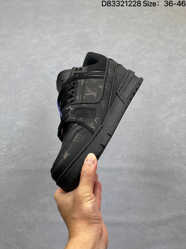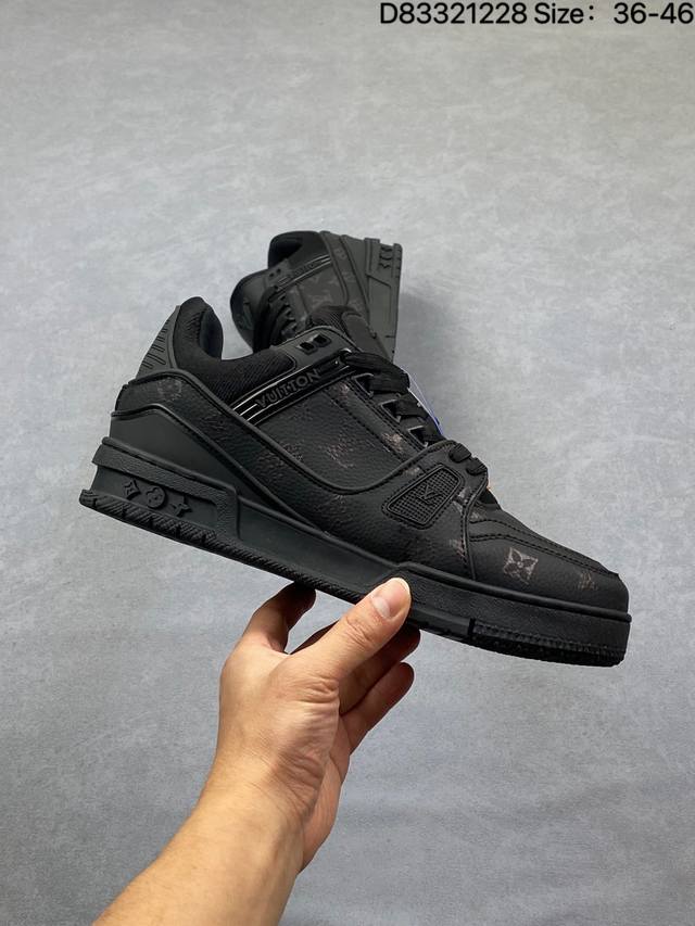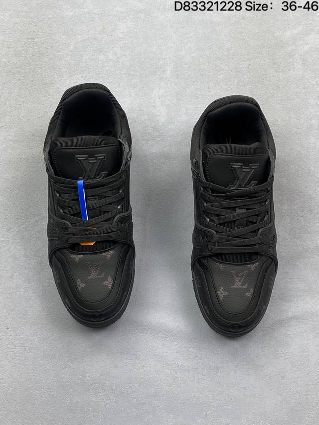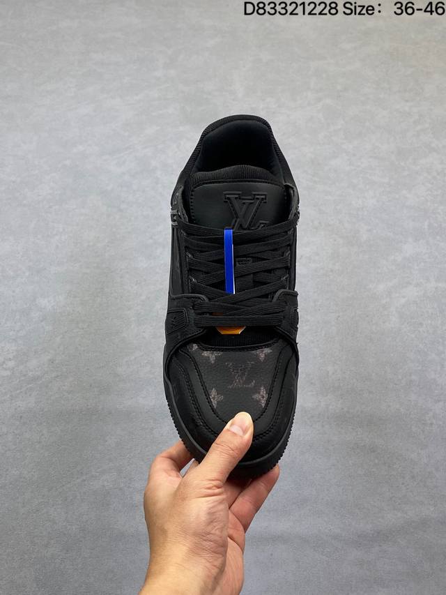 Louis Vuitton Lv Louis Vuitton sneakers DDD New Lv Trainer latest colorway sneakers, L brand basketball style sneakers. This shoe was designed by artistic director Virgil Abloh. The insole is made of microfiber material and breathable British mesh. Details are consistent with the original. Size: 36-45. As shown in the picture. ID: D83321228 DDD