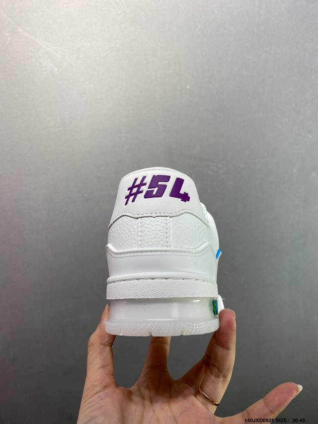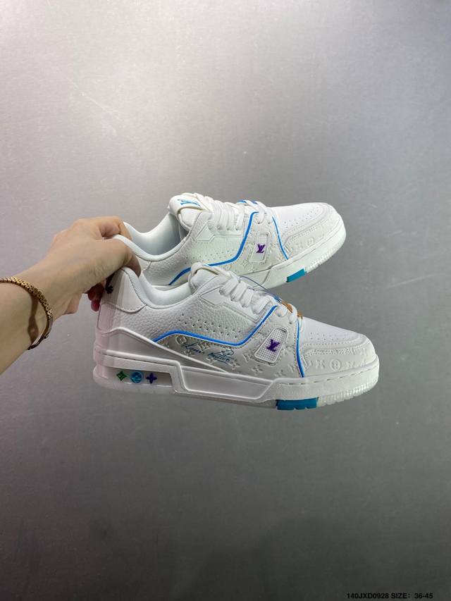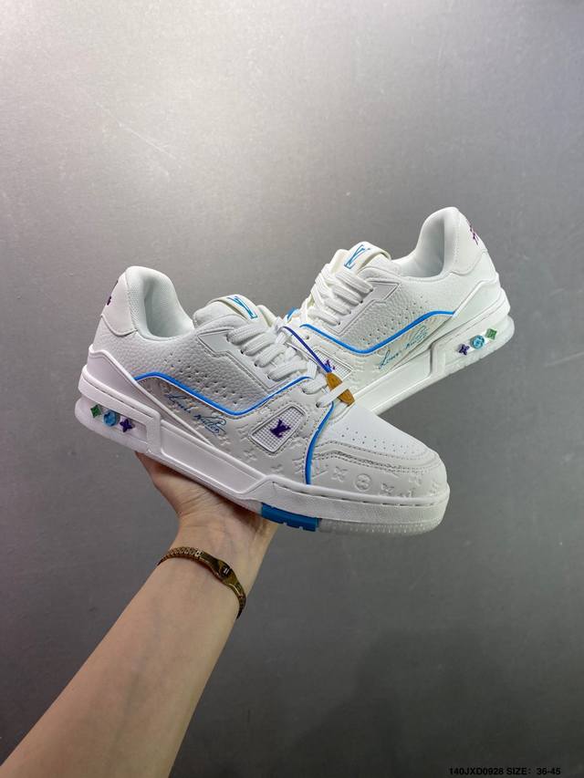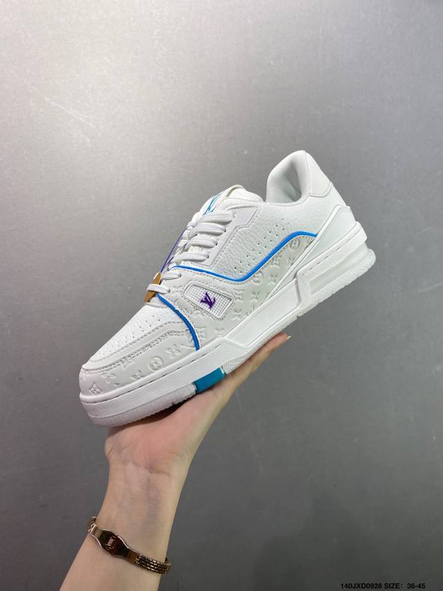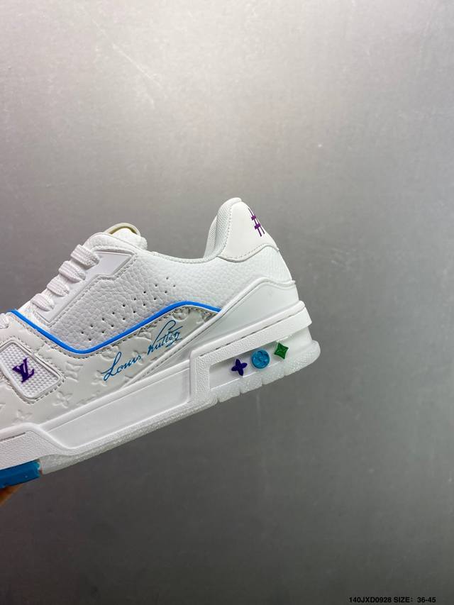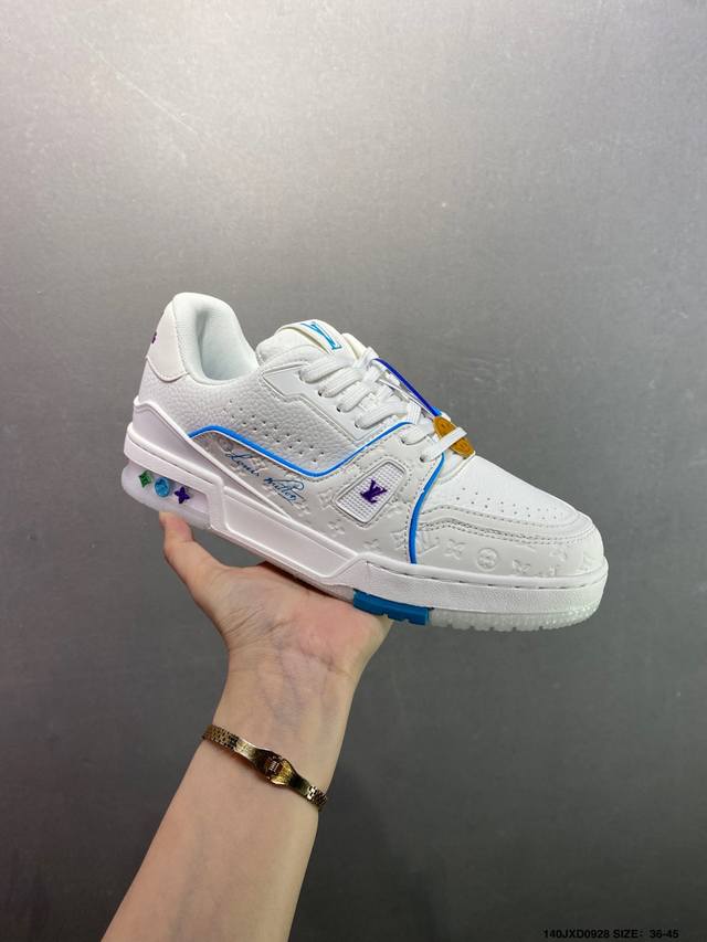 New LV Trainer sneakers in the latest colorway. L's basketball-style sneakers. Designed by artistic director Virgil Abloh, the shoes feature a footbed made of polyamide microfiber and breathable British mesh, with the same details as the original. Size: 36-45 (as shown). ID: Jxd0928
