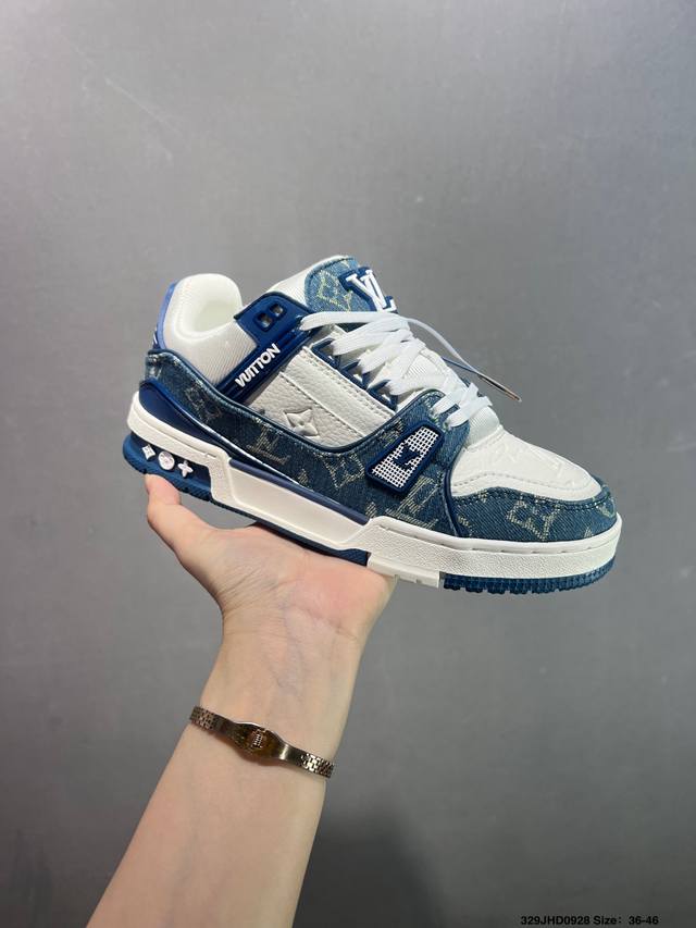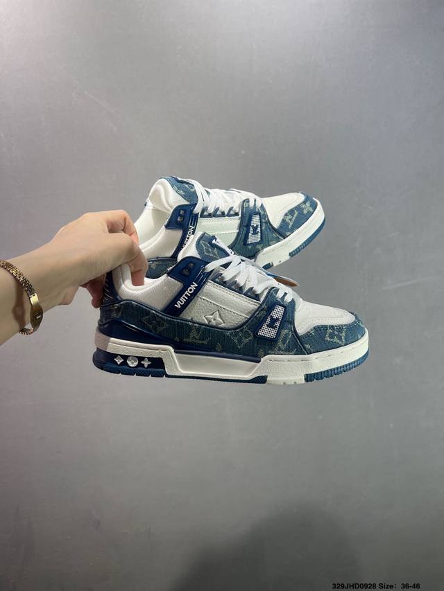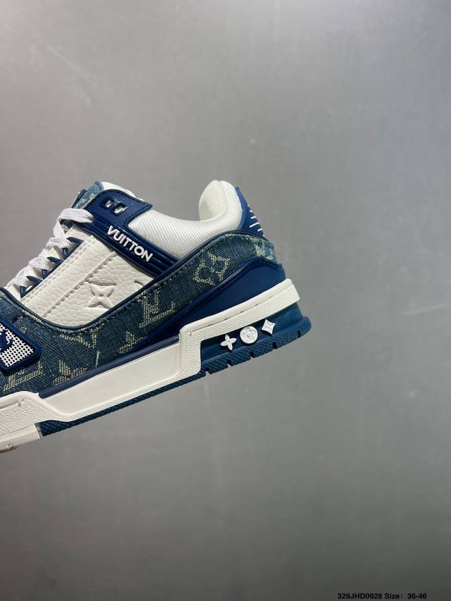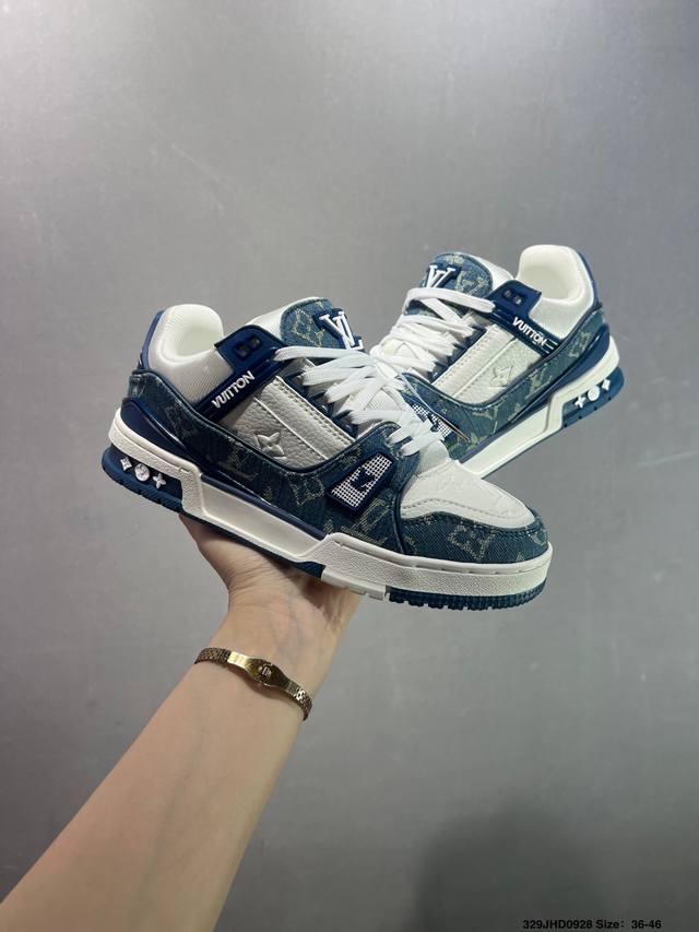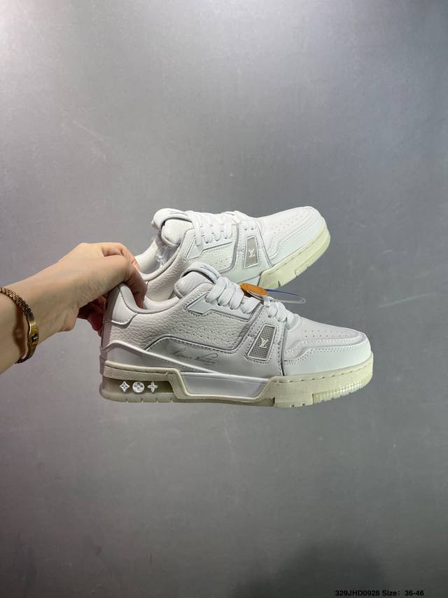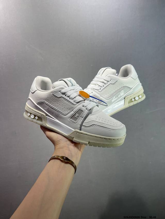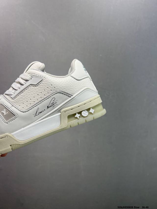 new LV Trainer sneakers in the latest colorway. L's basketball-style sneakers. Designed by artistic director Virgil Abloh, the shoes feature a footbed made of polyamide and breathable British mesh, with the same details as the original. Size: 36-46 ID: 329Jhd0928