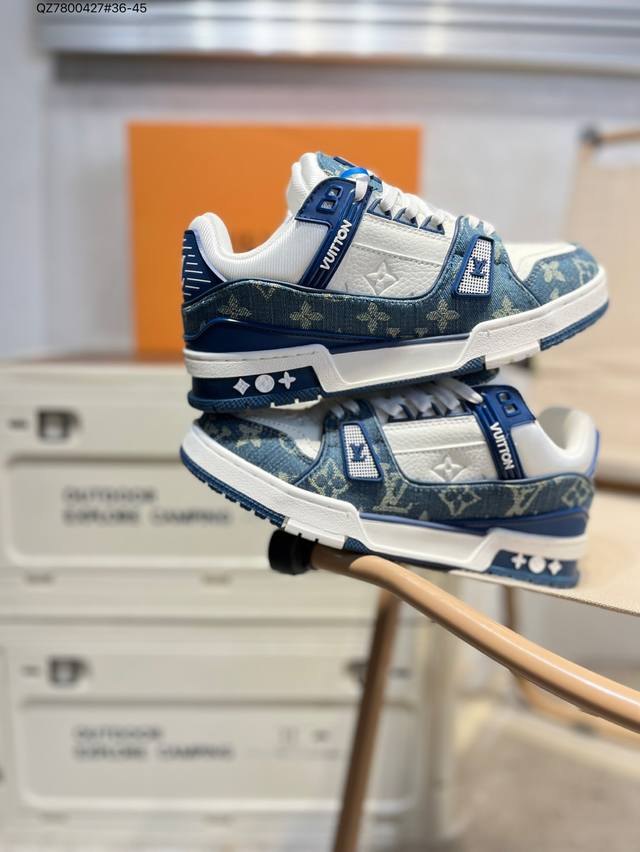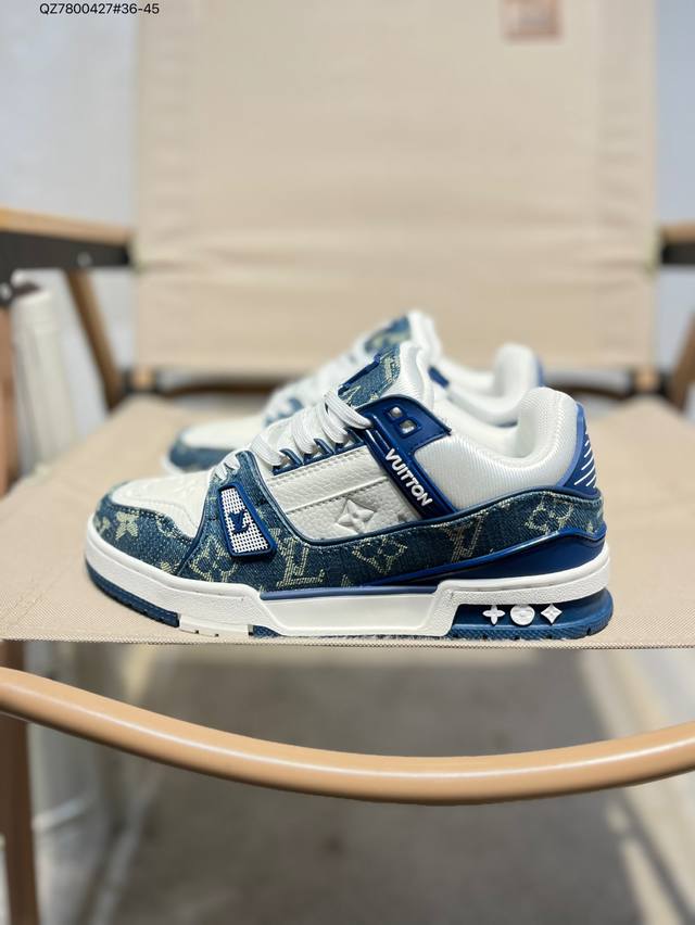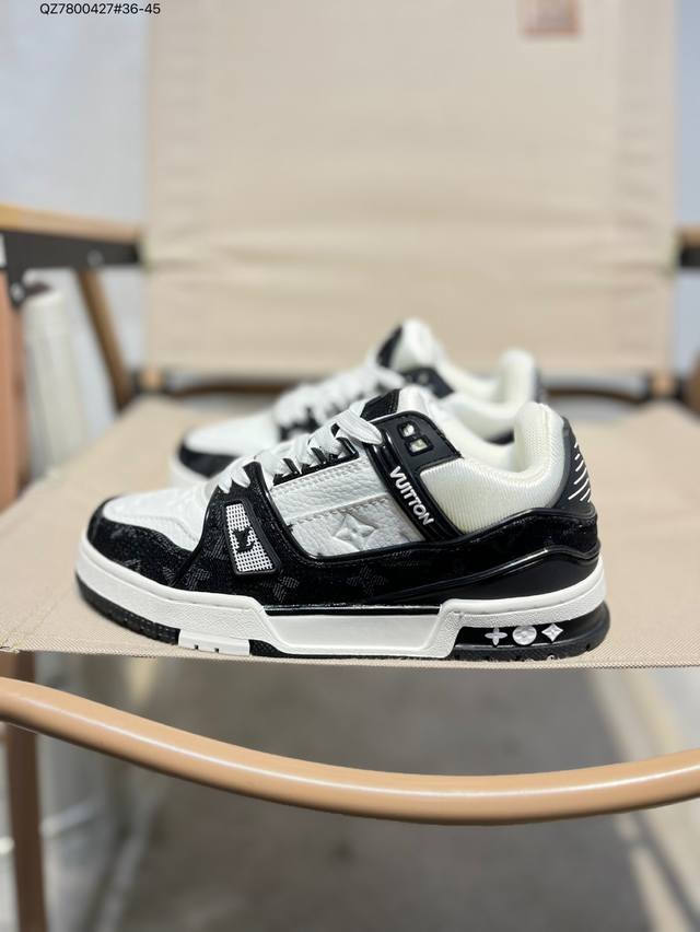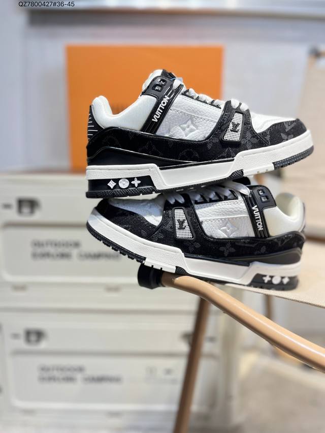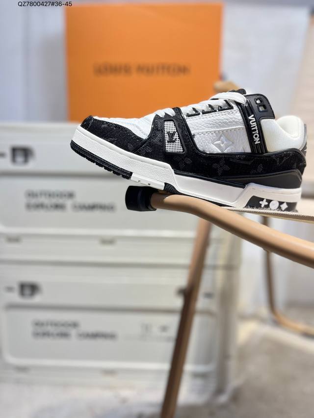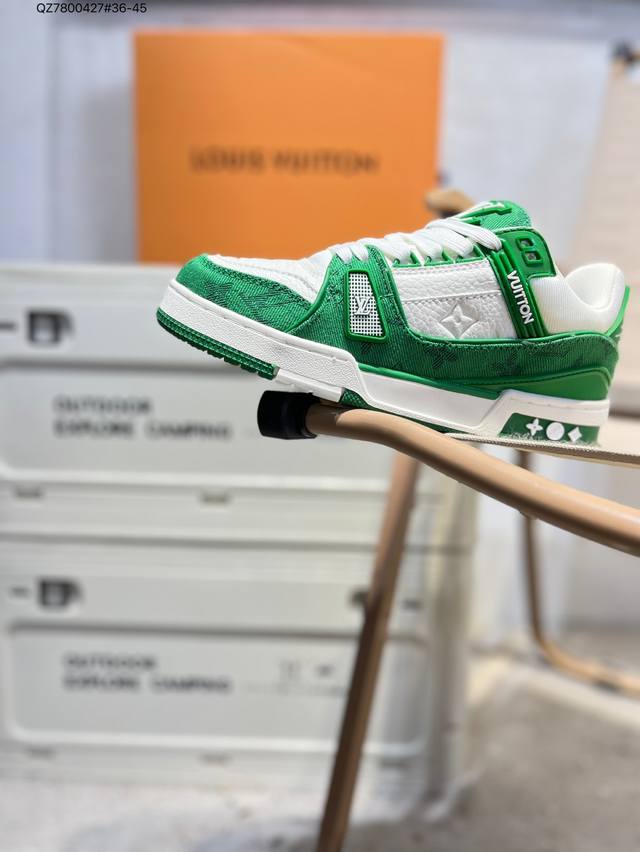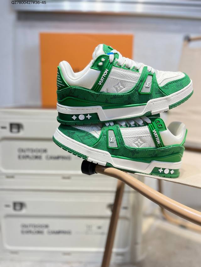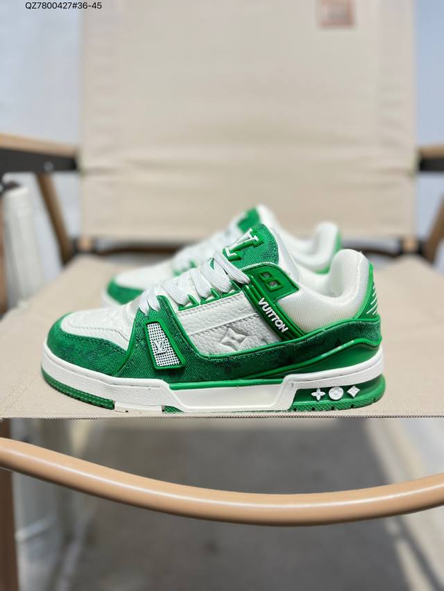 new LV Trainer sneakers in the latest colorway. L's basketball-style sneakers. Designed by artistic director Virgil Abloh, these shoes feature a footbed made of polyamide and breathable British mesh. Qz7800427#36-45