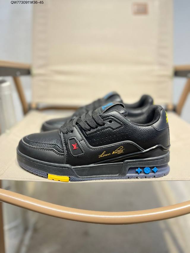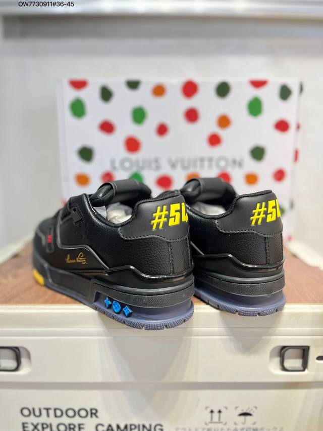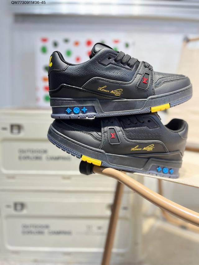 new LV Trainer sneakers in the latest colorway. L's basketball-style sneakers. Designed by artistic director Virgil Abloh, these shoes feature a footbed made of polyamide and breathable British mesh. Qw7730911 #36-45
