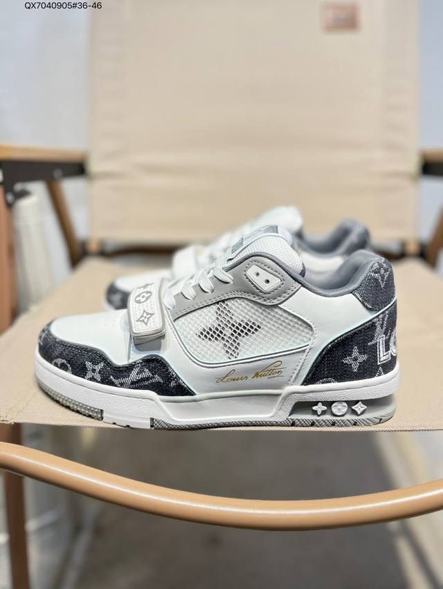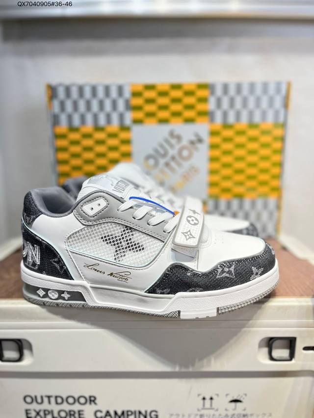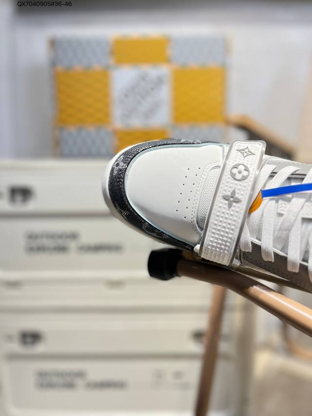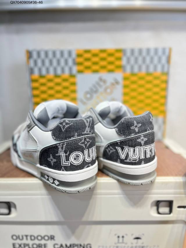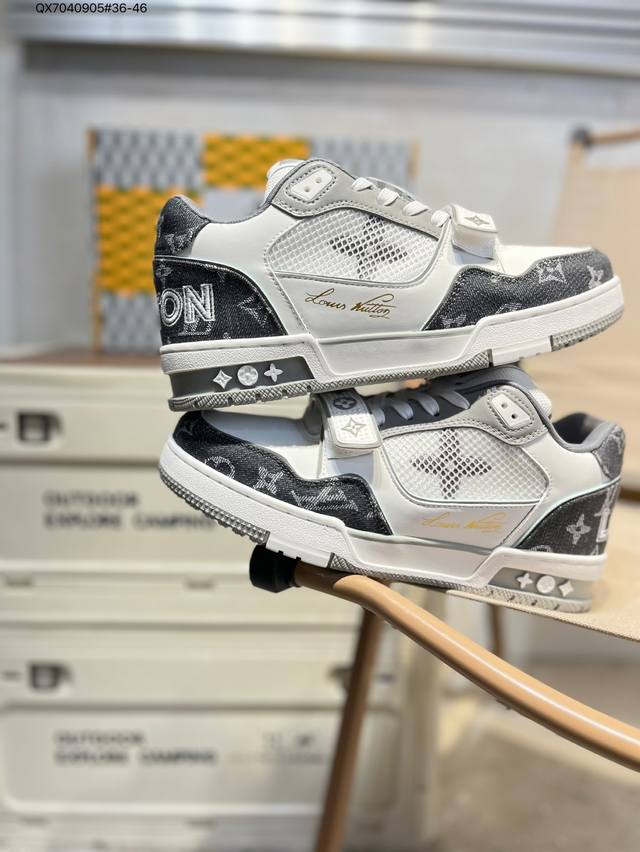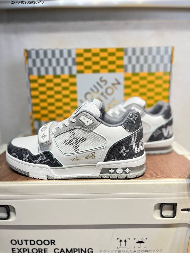 new LV Trainer sneakers in the latest colorway. L's basketball-style sneakers. Designed by artistic director Virgil Abloh, these shoes feature a footbed made of polyamide and breathable British mesh. Qx7040905#36-46
