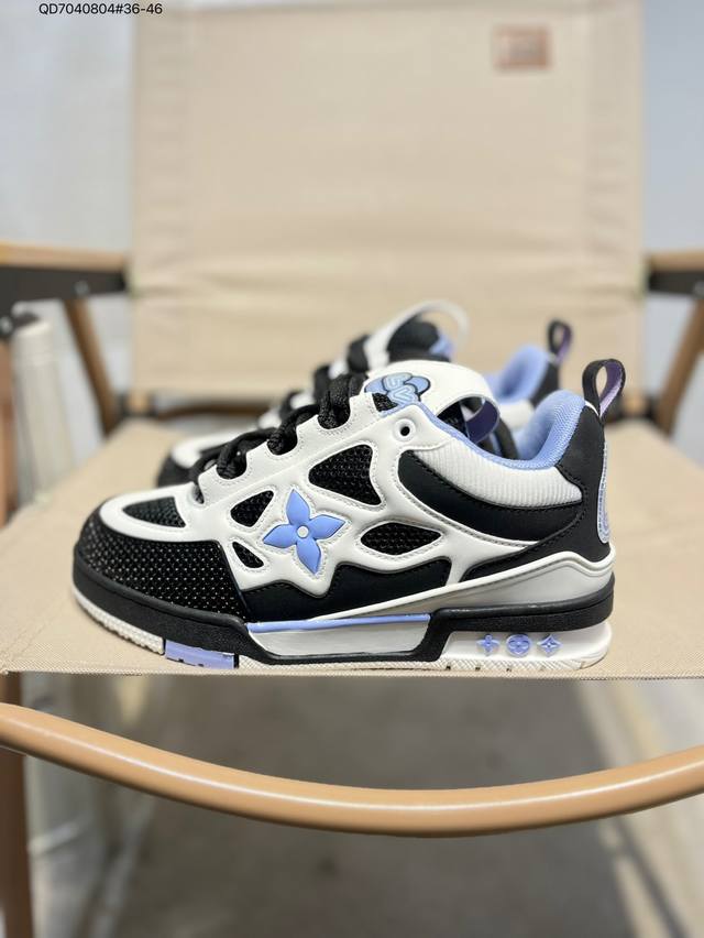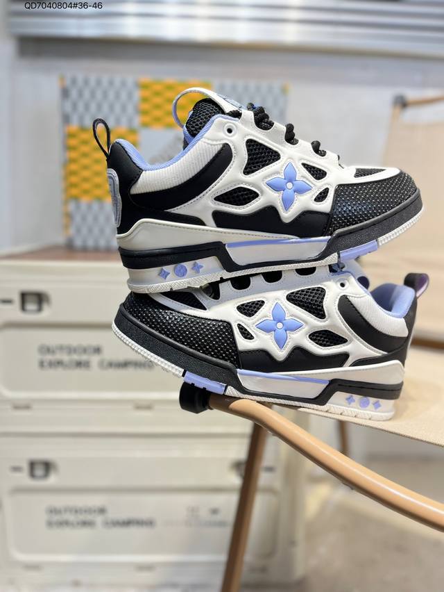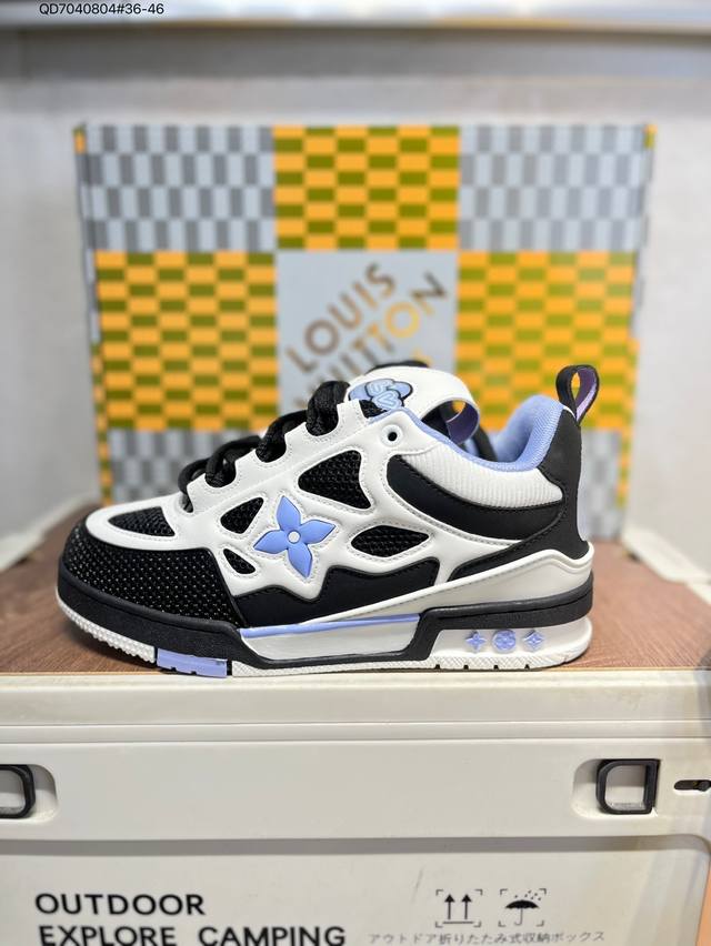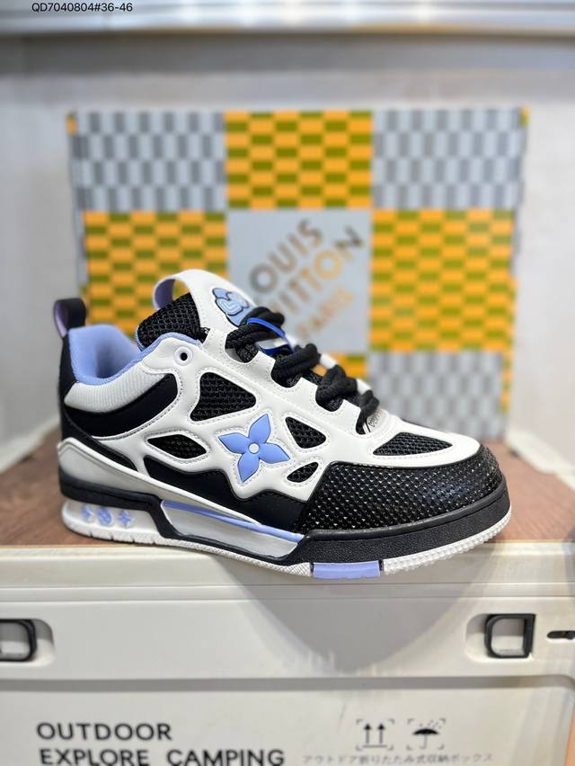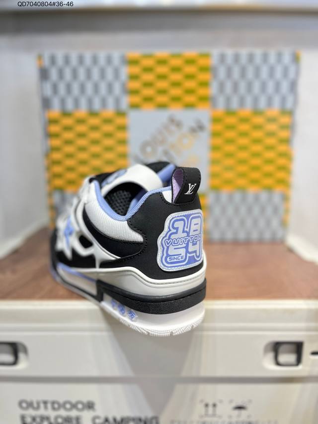 new LV Trainer sneakers in the latest colorway. L's basketball-style sneakers. Designed by artistic director Virgil Abloh, these shoes feature a footbed made of polyamide and breathable British mesh. Qd7040804#36-46
