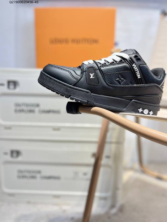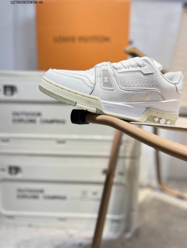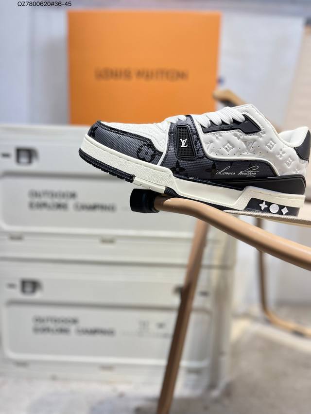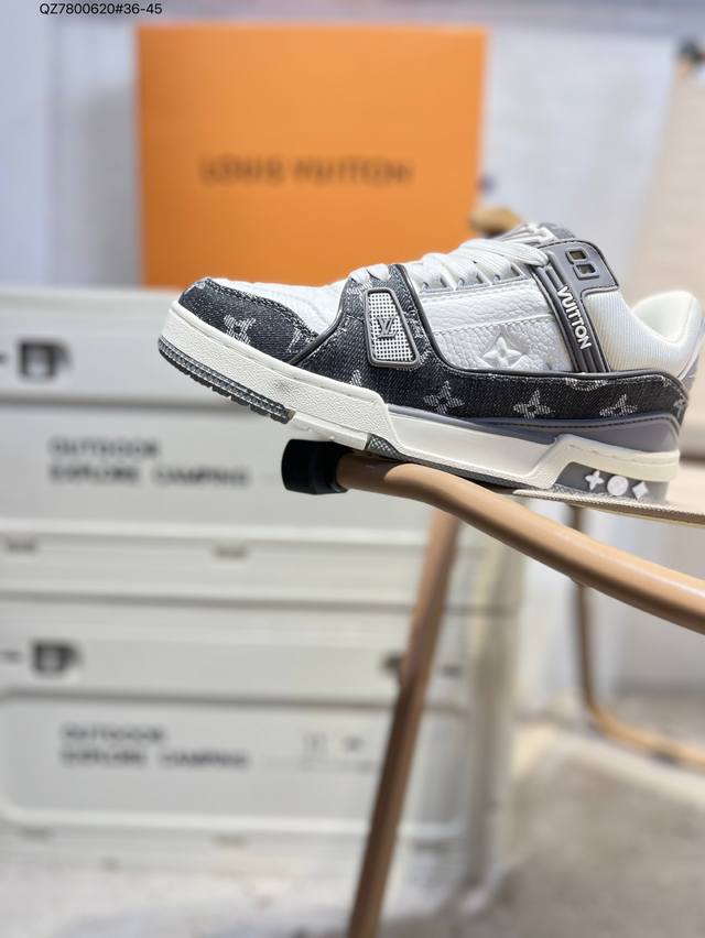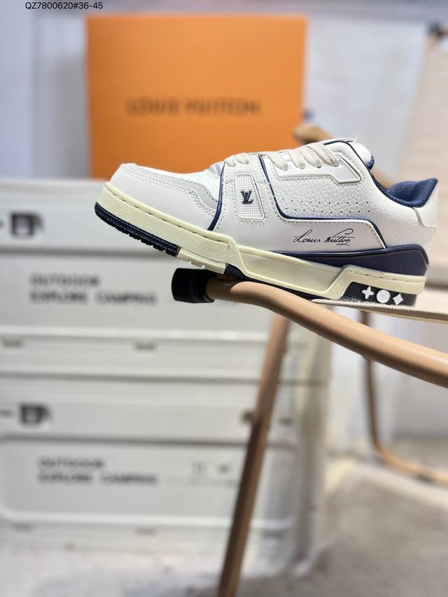 new LV Trainer sneakers in the latest colorway. L's basketball-style sneakers. Designed by artistic director Virgil Abloh, these shoes feature a footbed made of polyamide and breathable British mesh. Qz7800620#36-45