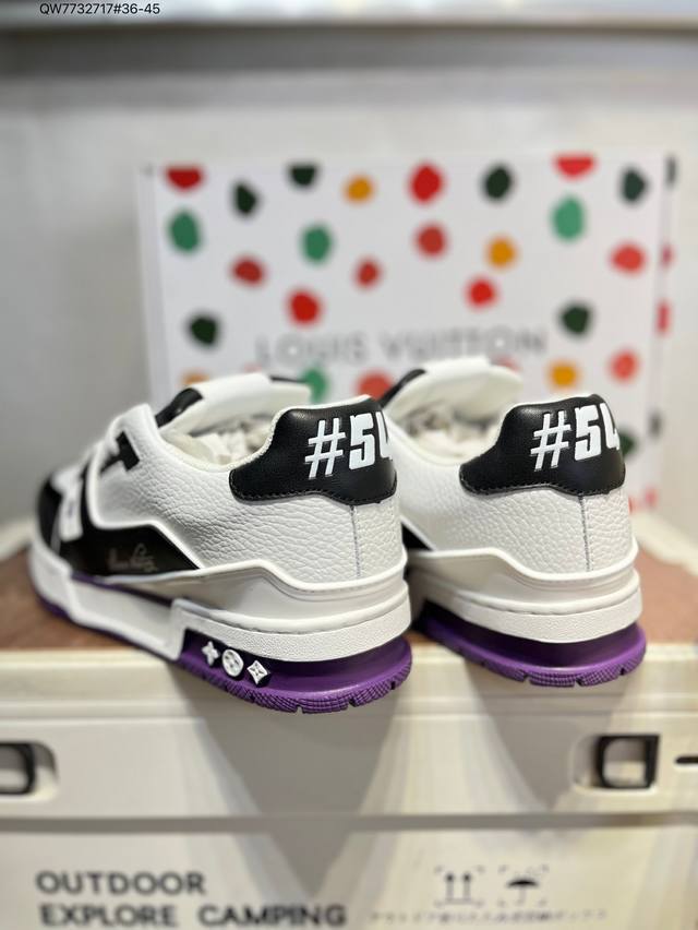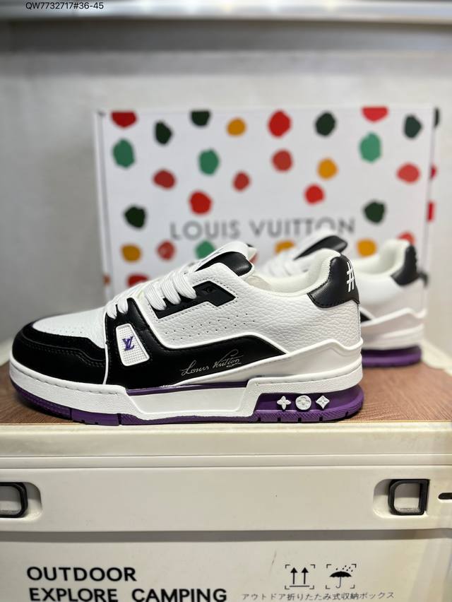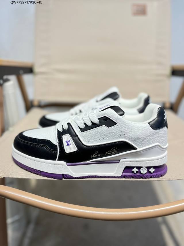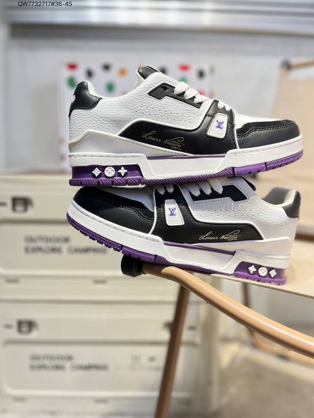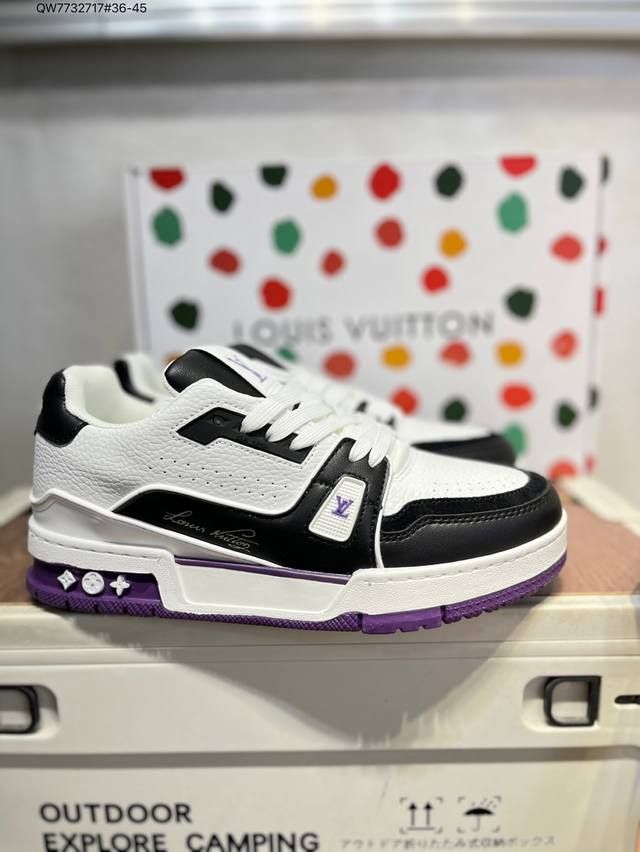 new LV Trainer sneakers in the latest colorway. L's basketball-style sneakers. Designed by artistic director Virgil Abloh, these shoes feature a footbed made of polyamide and breathable British mesh. Qw7732717#36-45