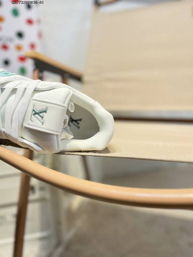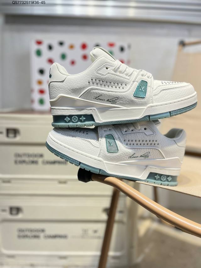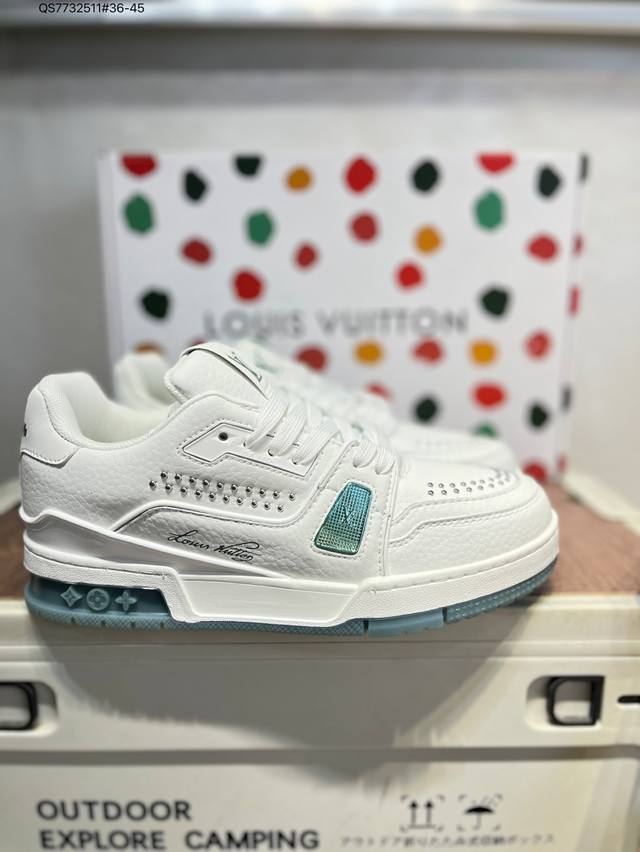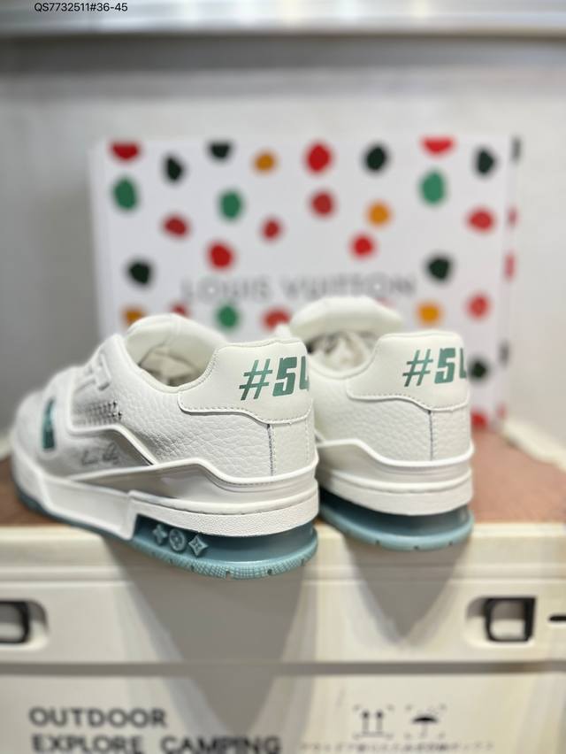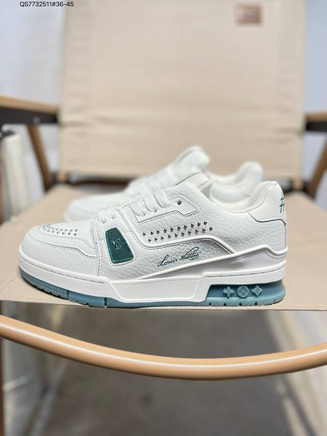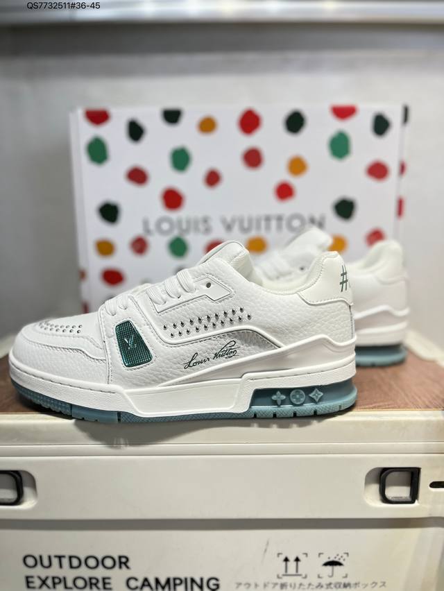 new LV Trainer sneakers in the latest colorway. L's basketball-style sneakers. Designed by artistic director Virgil Abloh, these shoes feature a footbed made of polyamide and breathable British mesh. Qs7732511 #36-45
