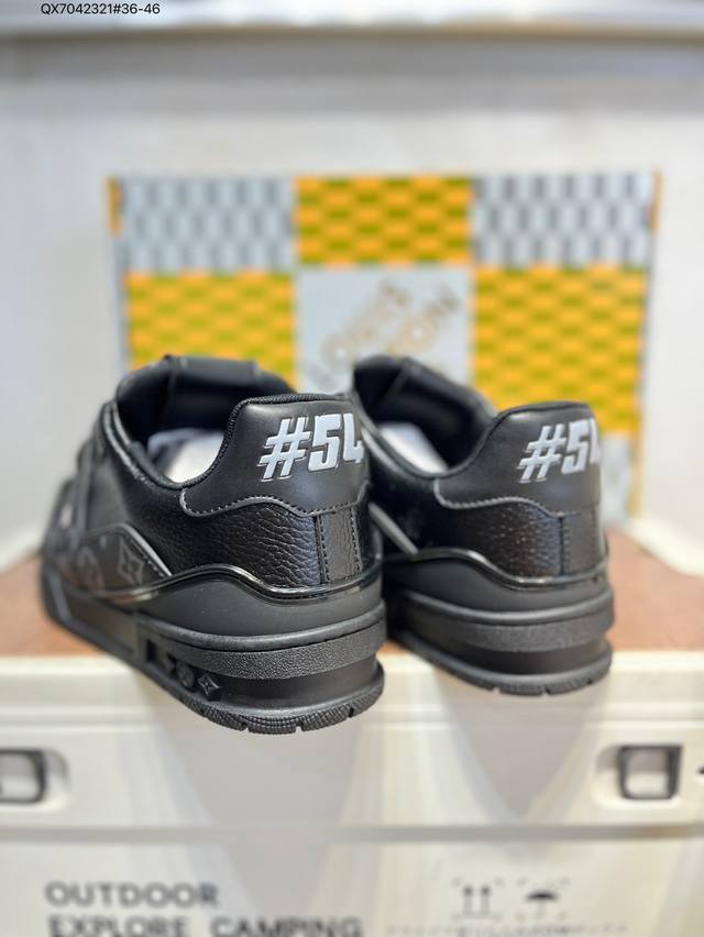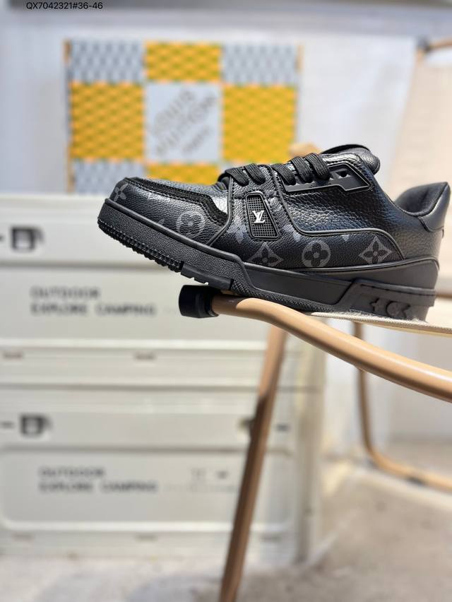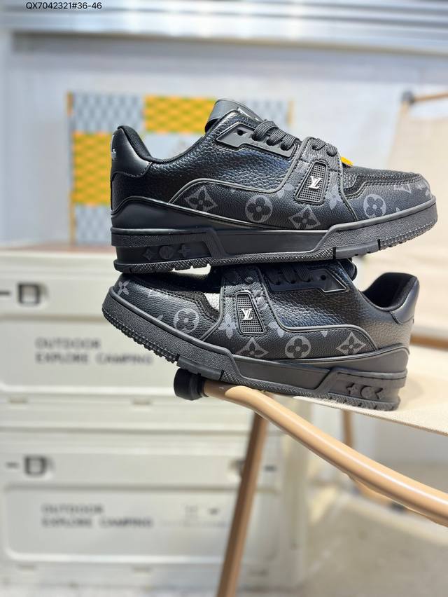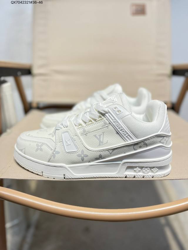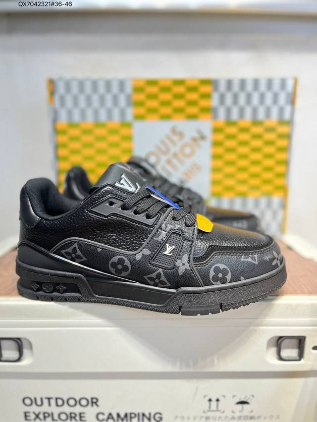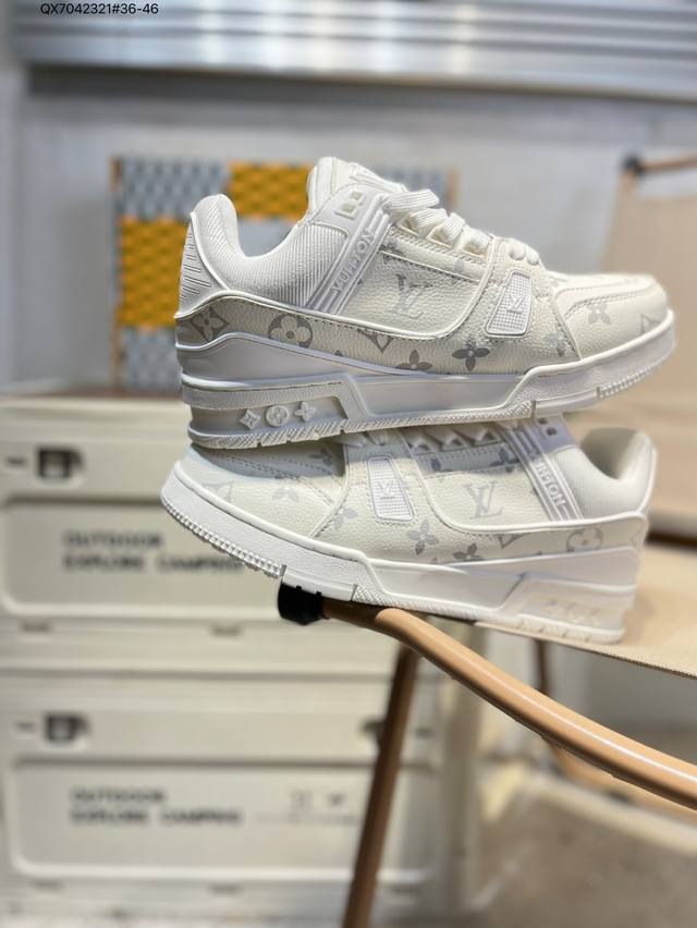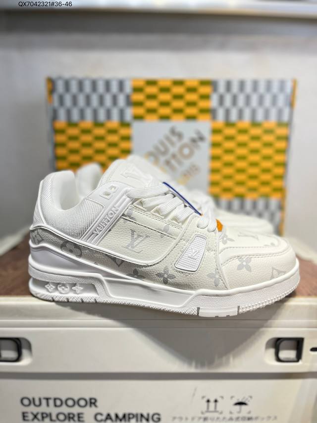 new LV Trainer sneakers in the latest colorway. L's basketball-style sneakers. Designed by artistic director Virgil Abloh, these shoes feature a footbed made of polyamide and breathable British mesh. Qx7042321#36-46