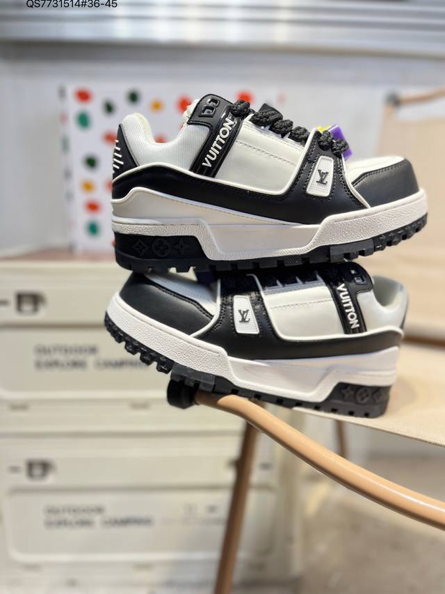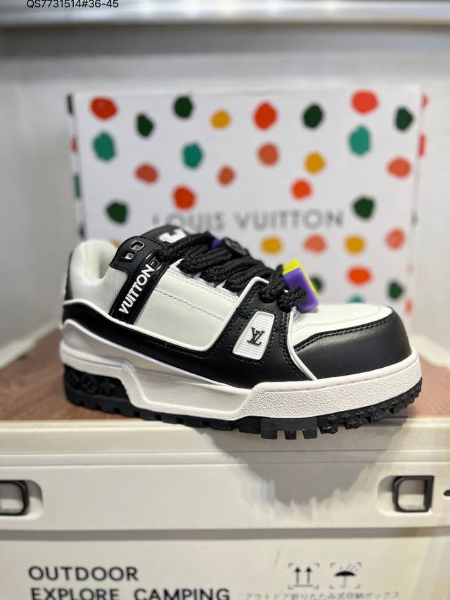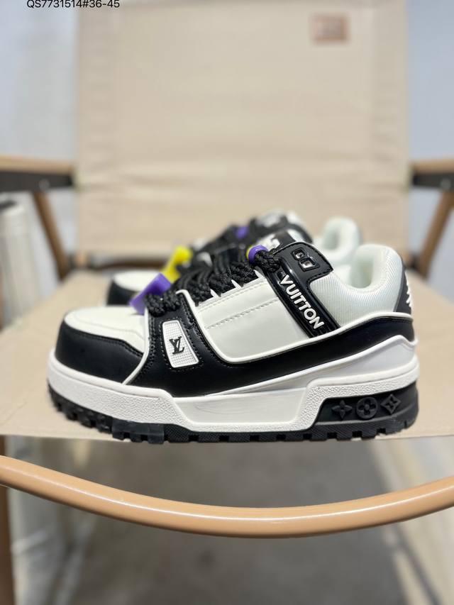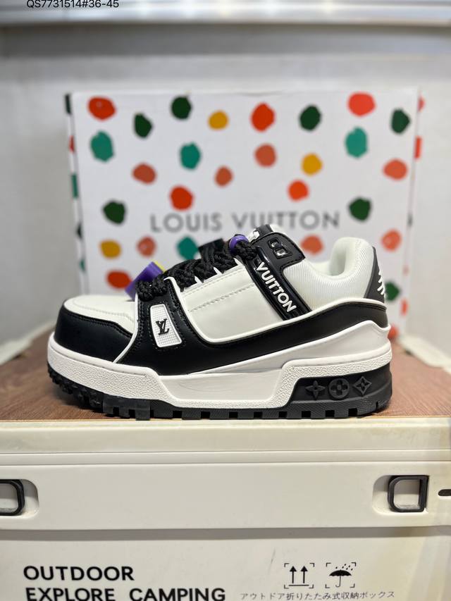 Louis Vuitton LV new "Fat Cube" LV Trainer latest colorway sneakers, L brand Trainer calfskin basketball style sneakers. This shoe is designed by artistic director Virgil Abloh. A collectible for trendy sneaker enthusiasts. The color scheme is super good-looking. Qs7731514#36-45