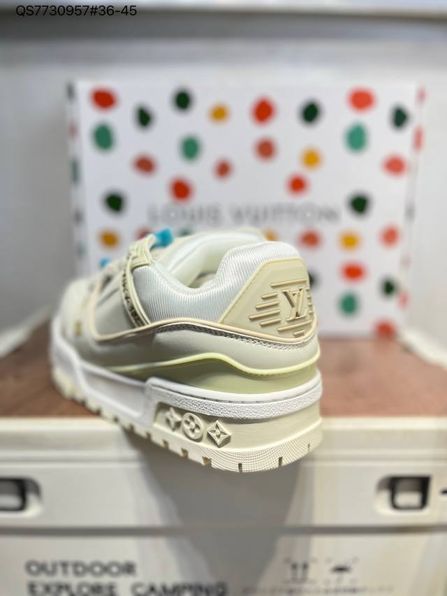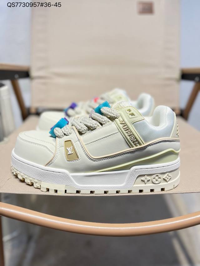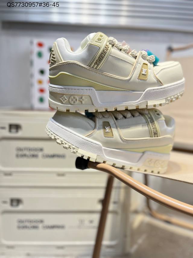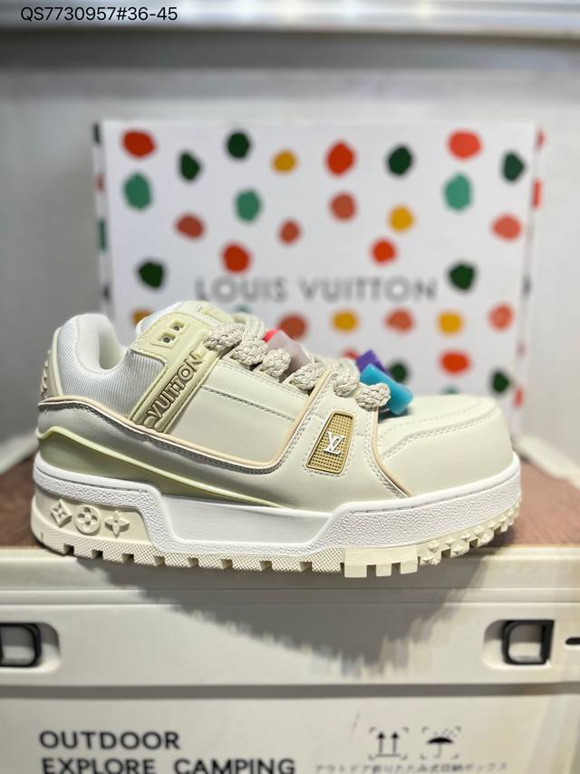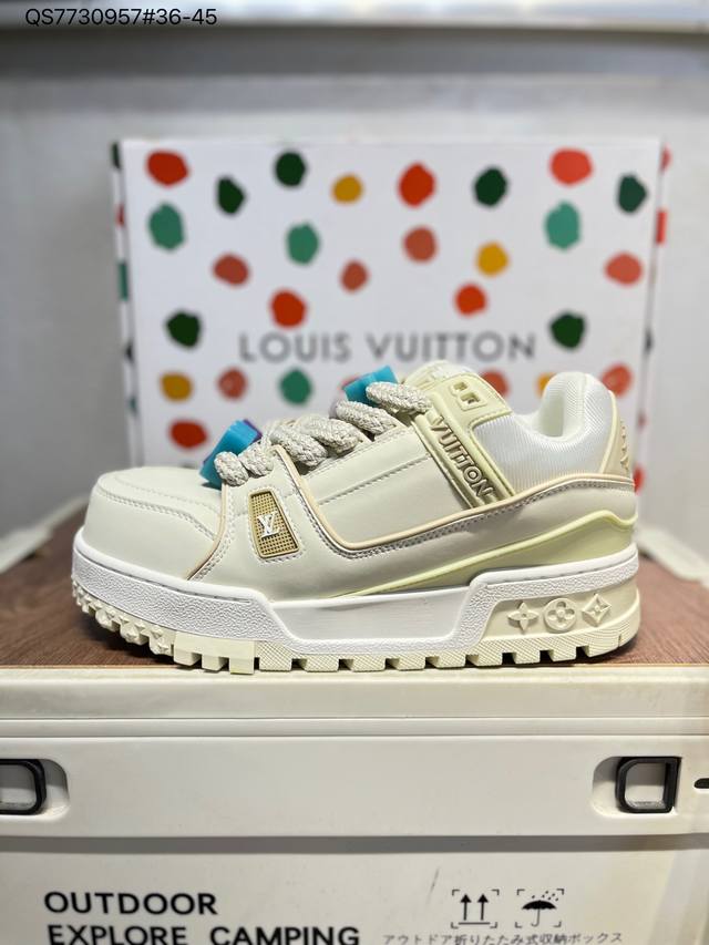 Louis Vuitton LV new "Fat Cube" LV Trainer latest colorway sneakers, L brand Trainer calfskin basketball style sneakers. This shoe is designed by artistic director Virgil Abloh. A collectible for trendy sneaker enthusiasts. The colorway is super good-looking. Qs7730957#36-45