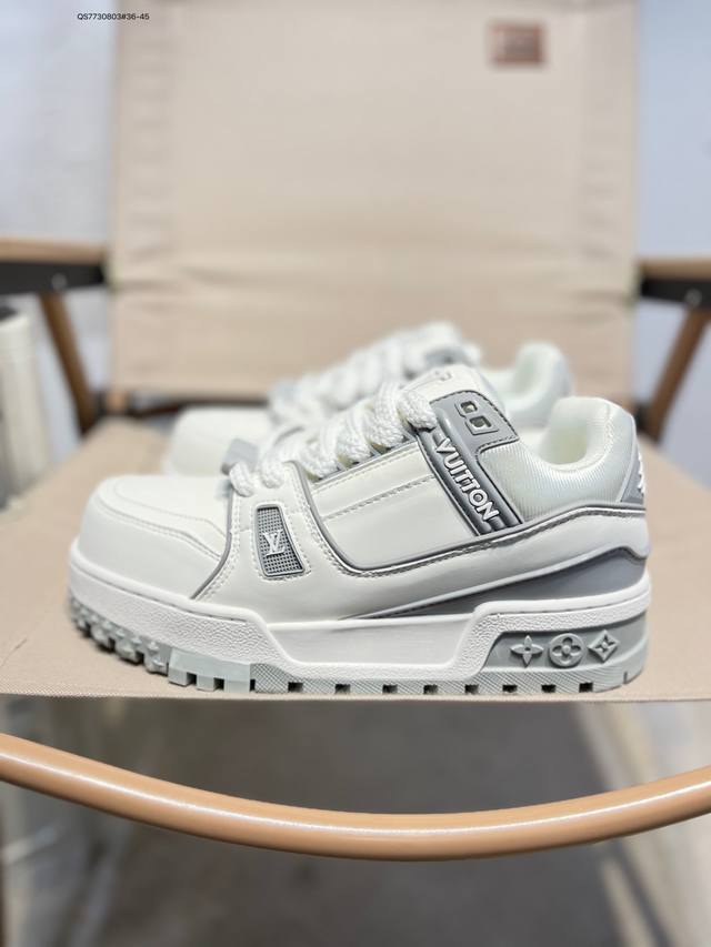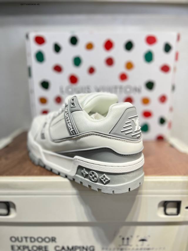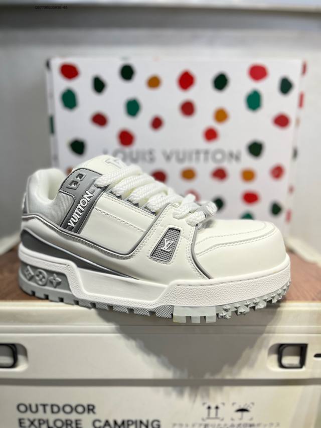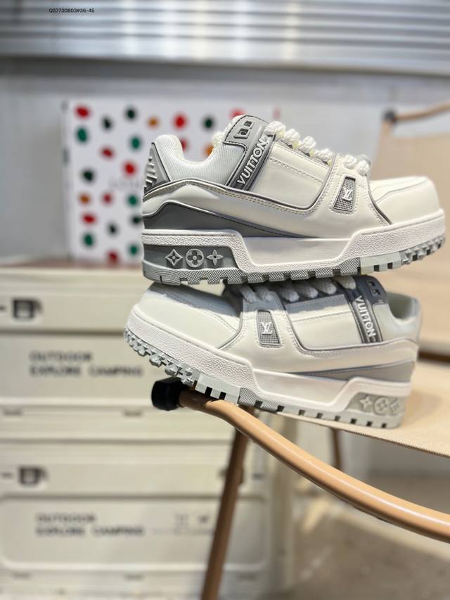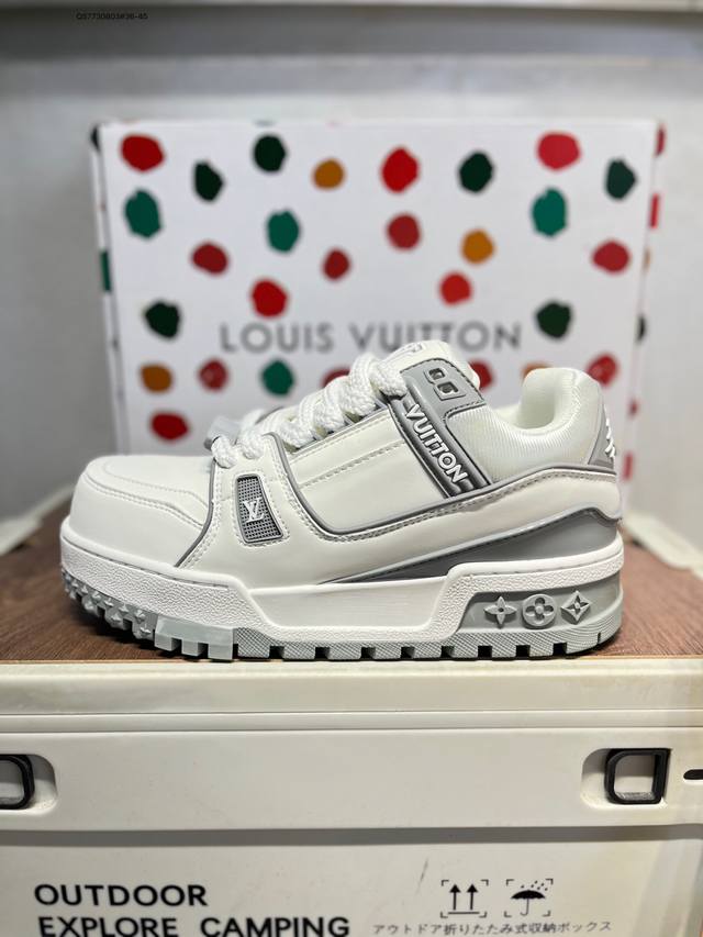 Louis Vuitton LV new "Fat Cube" LV Trainer latest colorway sneakers, L brand Trainer calfskin basketball style sneakers. This shoe is designed by artistic director Virgil Abloh. A collectible for trendy sneaker enthusiasts. The color scheme is super good-looking. Qs7730803#36-45