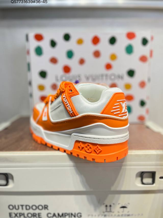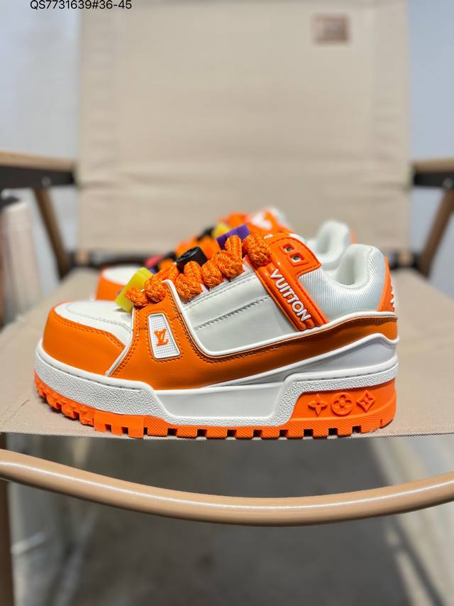 Louis Vuitton LV new "Fat Cube" LV Trainer latest colorway sneakers, L brand Trainer calfskin basketball shoes. This shoe is designed by artistic director Virgil Abloh and is a collector's item for sneaker enthusiasts. The colorway is super cool. Qs7731639#36-45