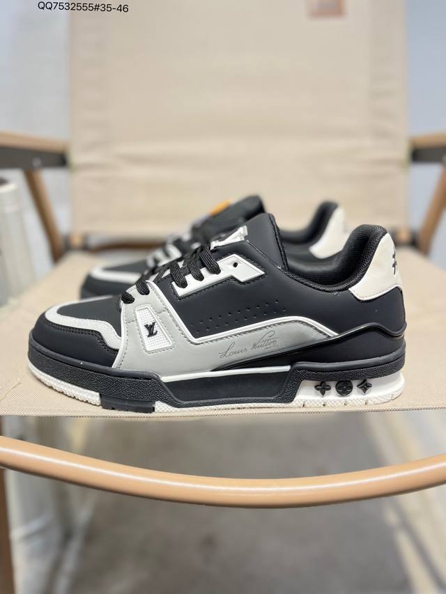 New Lv Trainer latest colorway sneakers L brand basketball style sneakers. This shoe is designed by artistic director Virgil Abloh. The insole is made of microfiber and breathable British mesh fabric. Qq7532555# 35-46