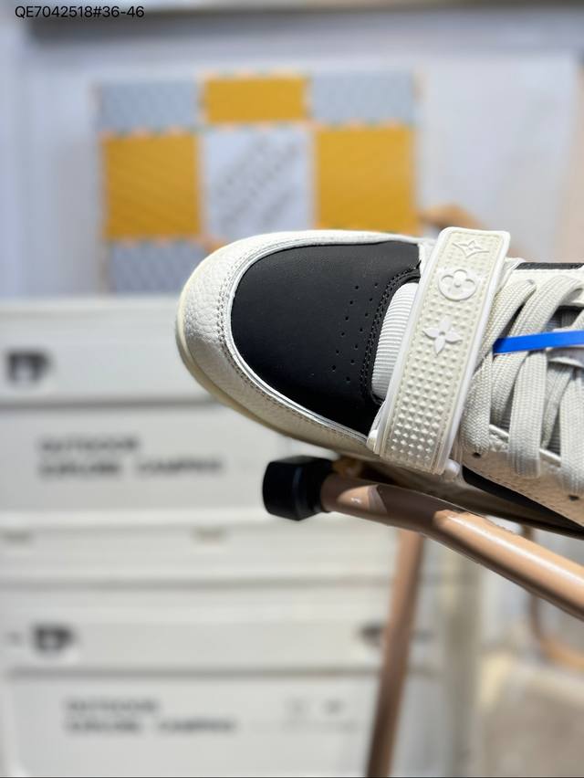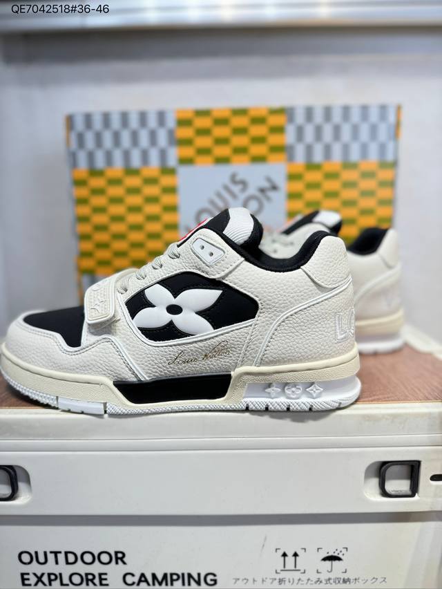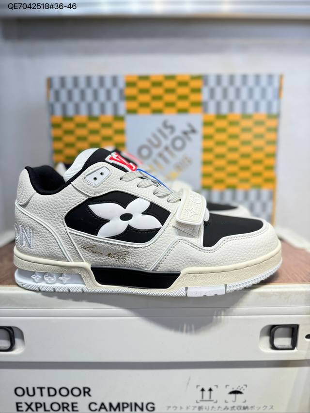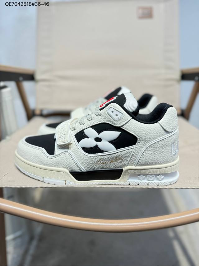 New Lv Trainer latest colorway sneakers L brand basketball shoe style sneakers. This shoe is designed by artistic director Virgil Abloh. Insole made of microfiber and breathable British mesh fabric