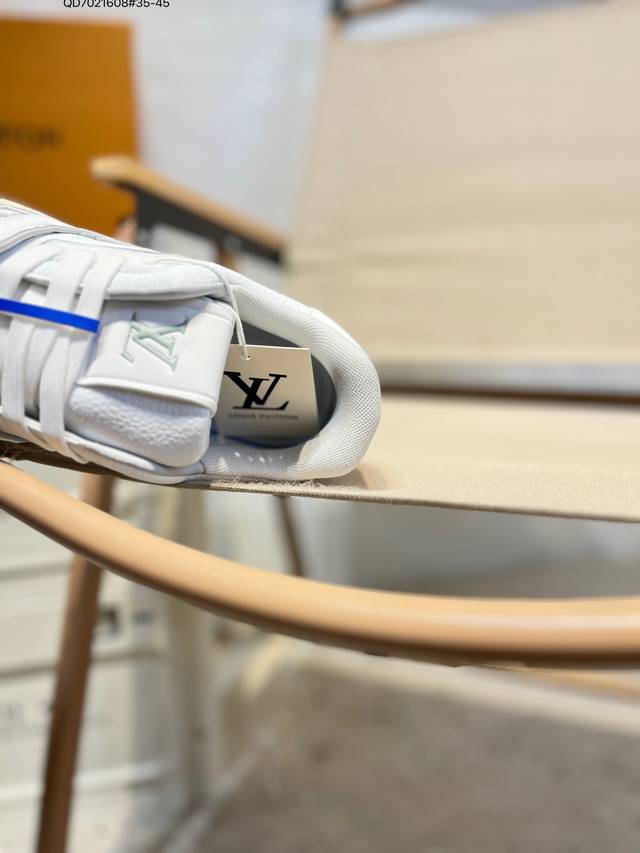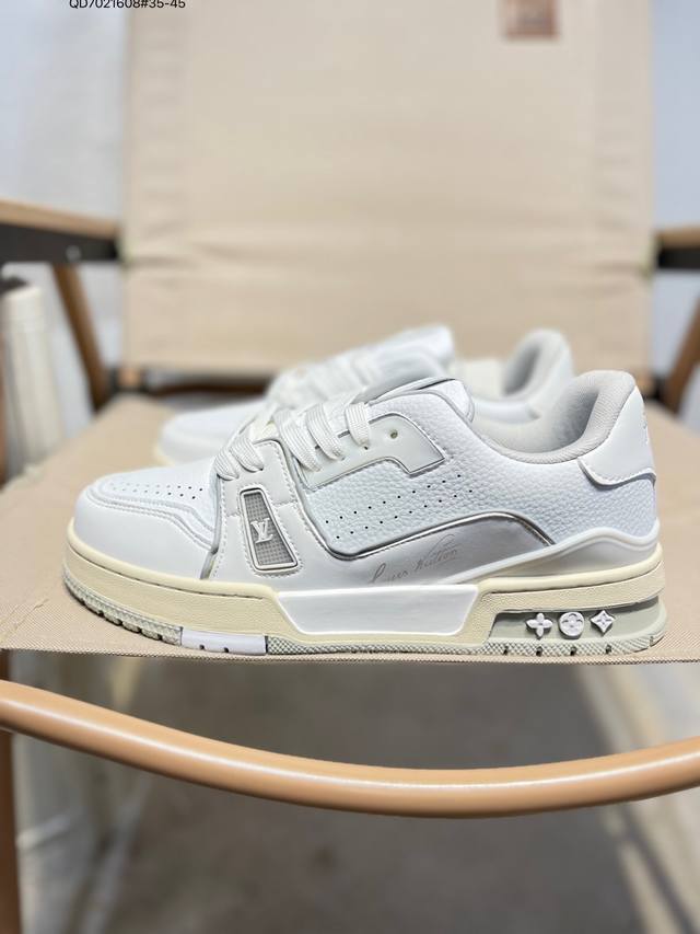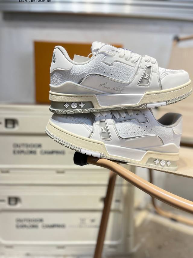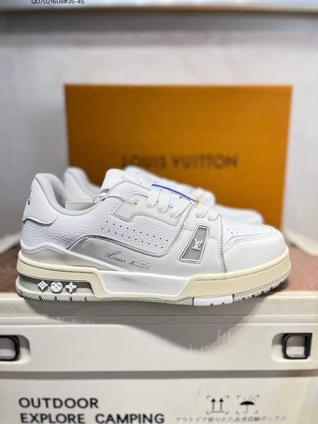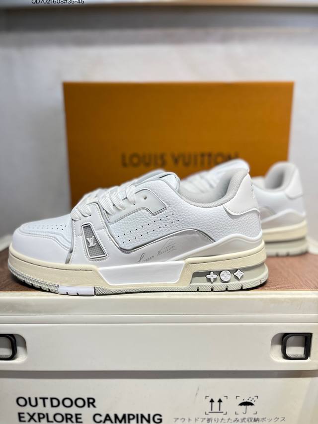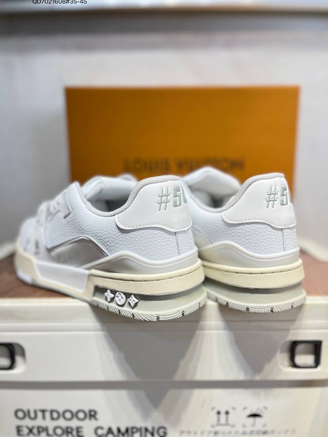 New Lv Trainer latest colorway sneakers L brand basketball style sneakers. This shoe is designed by artistic director Virgil Abloh. The insole is made of microfiber and breathable British mesh. Qd7021608# 35-45