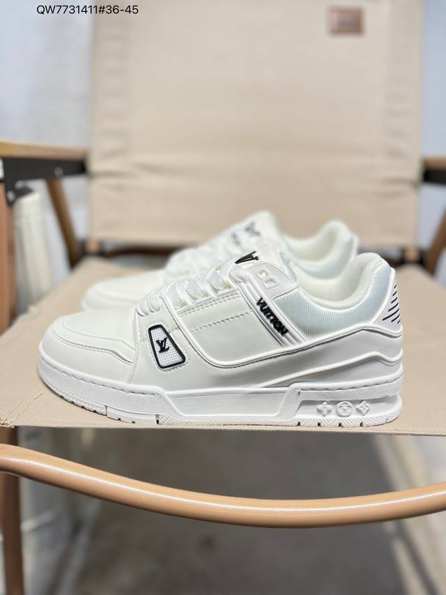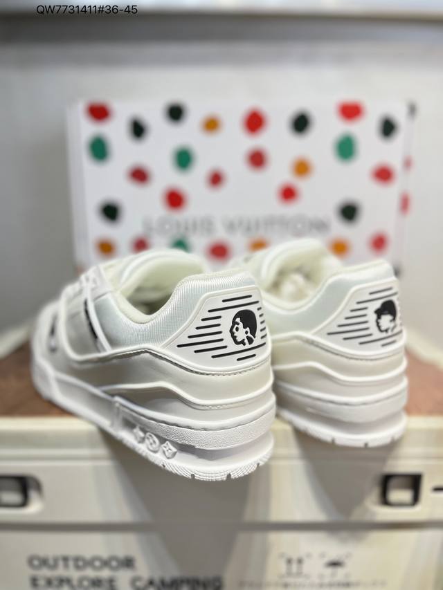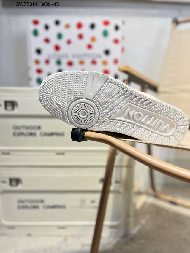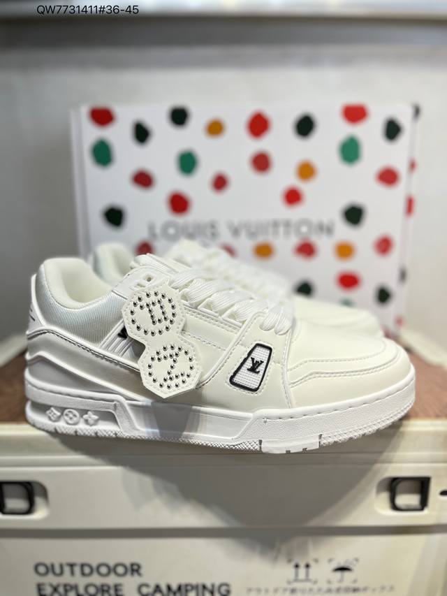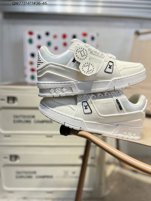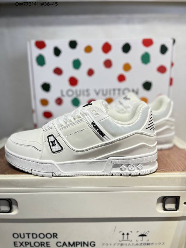 New Lv Trainer latest colorway sneakers Lv brand basketball style sneakers. This shoe is designed by artistic director Virgil Abloh. The insole is made of microfiber and breathable British mesh. Qw7731411# 36-45