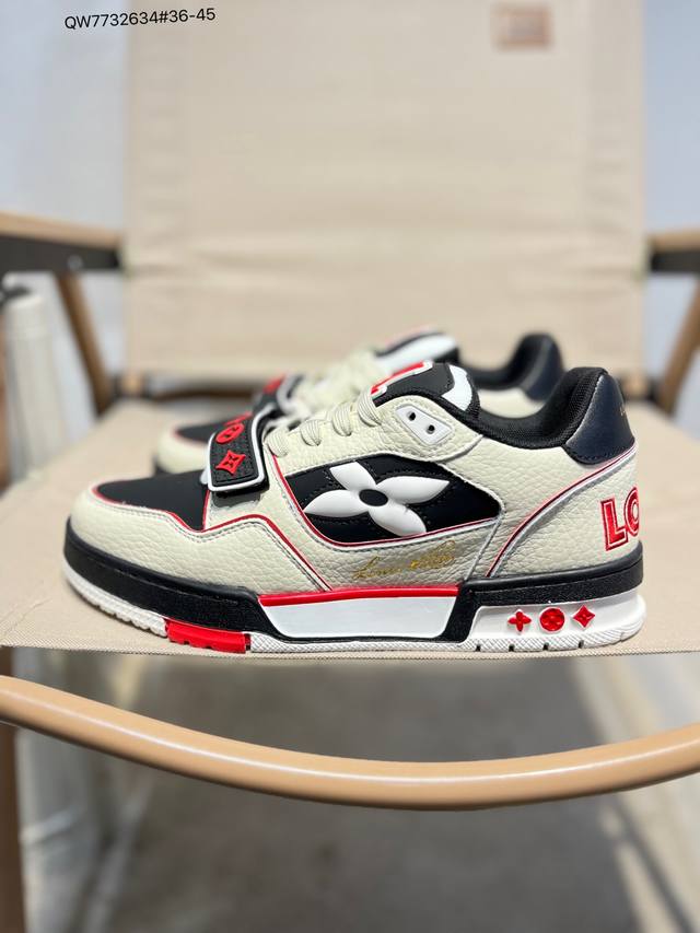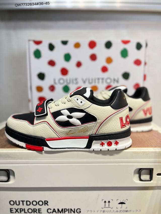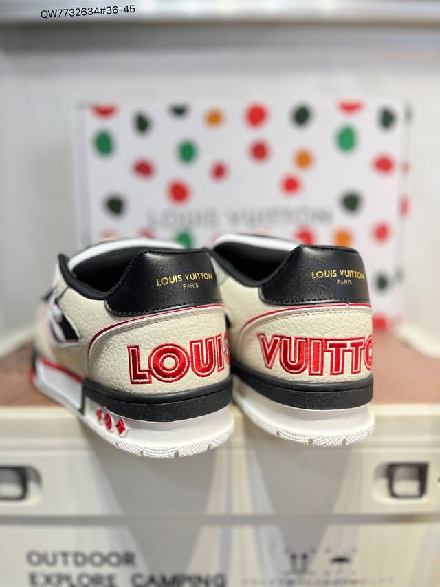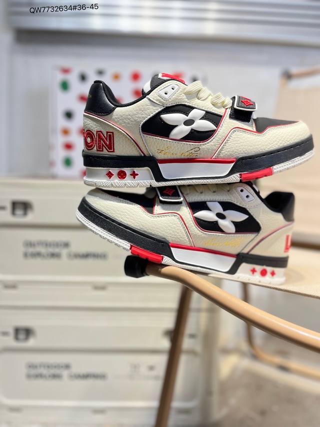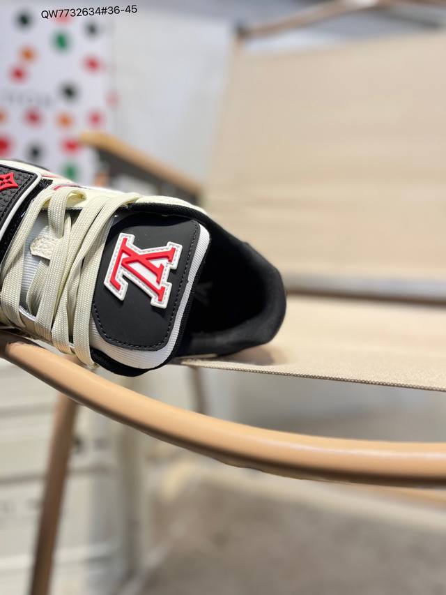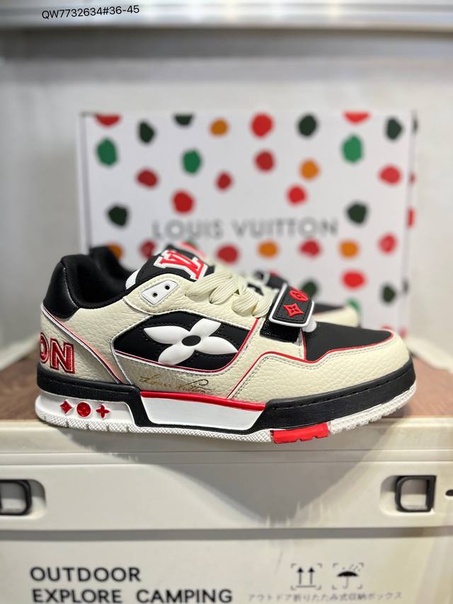 New Lv Trainer latest colorway sneakers Lv brand basketball style sneakers. This shoe is designed by artistic director Virgil Abloh. The insole is made of microfiber and breathable British mesh. Qw7732634# 36-45