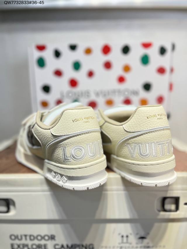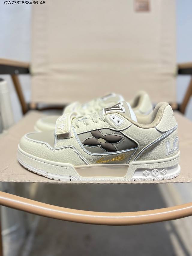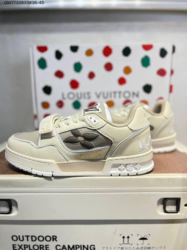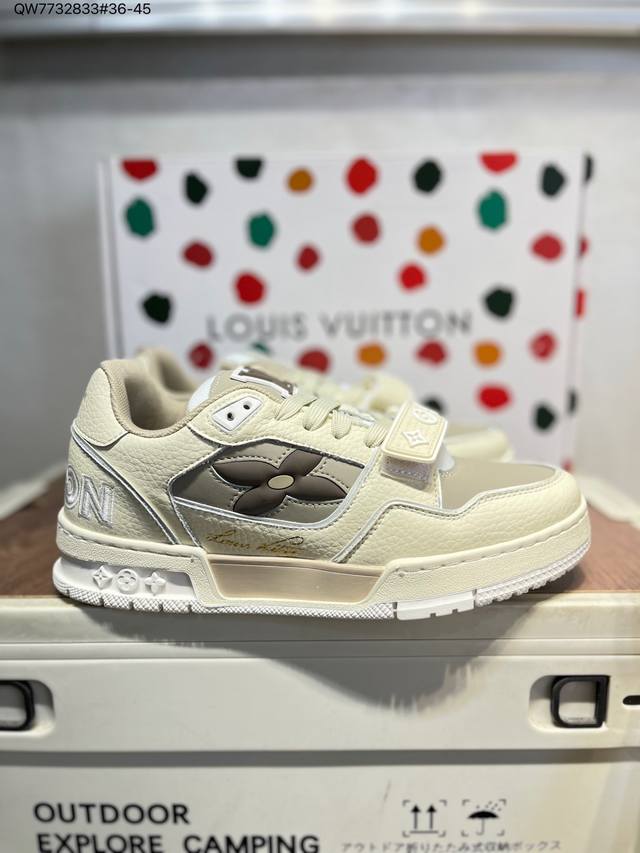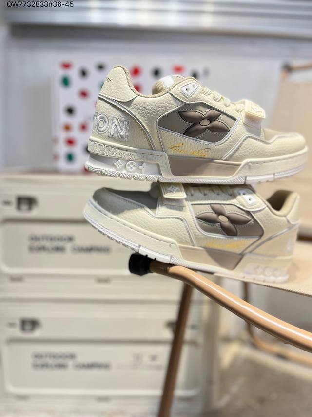 New Lv Trainer latest colorway sneakers Lv brand basketball style sneakers. This shoe is designed by artistic director Virgil Abloh. The insole is made of microfiber and breathable British mesh. Qw7732833# 36-45