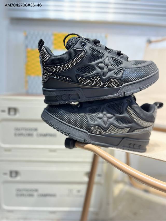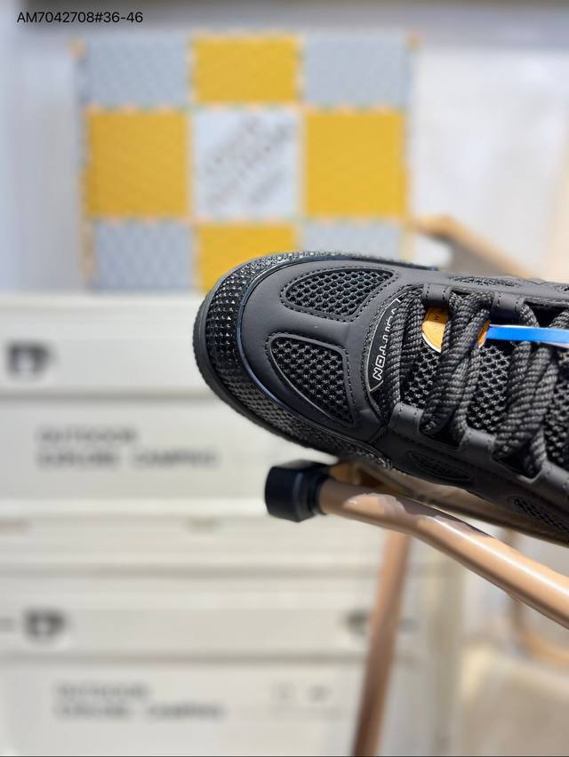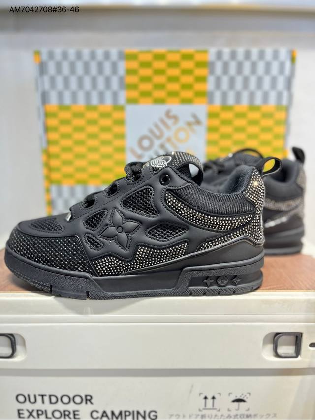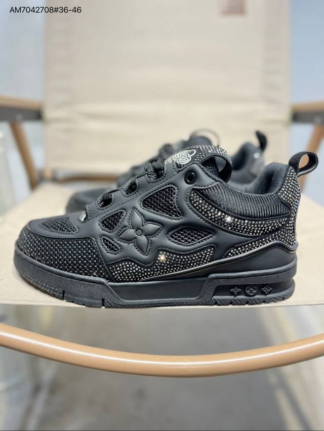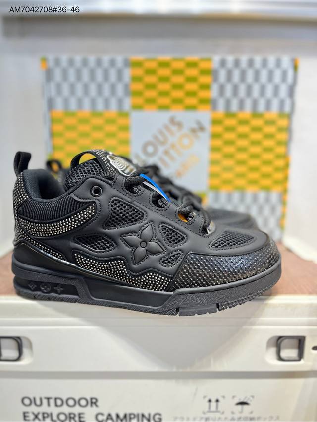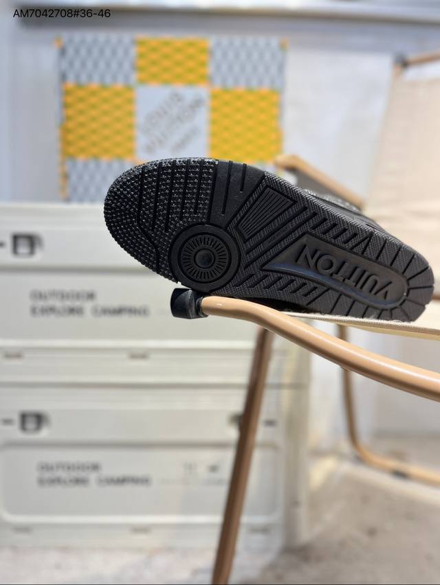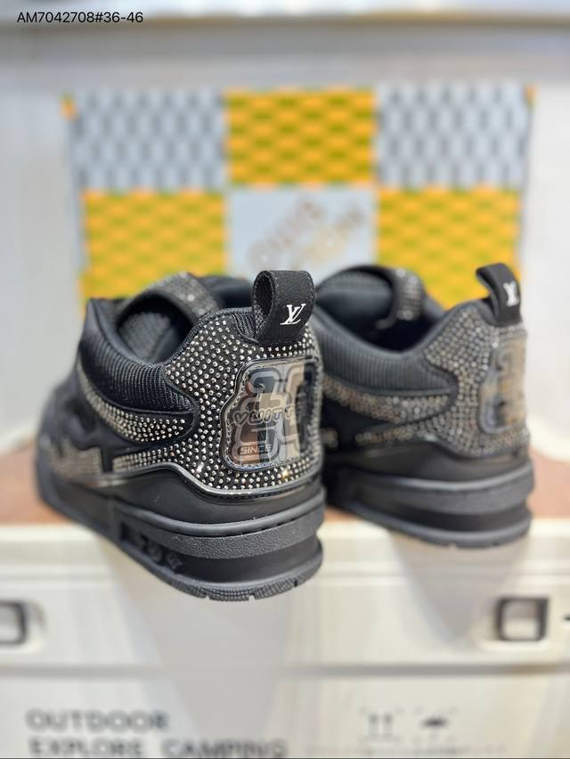 New Lv Trainer latest colorway sneakers Lv brand basketball style sneakers. This shoe is designed by artistic director Virgil Abloh. Insole made of microfiber and breathable British mesh fabric