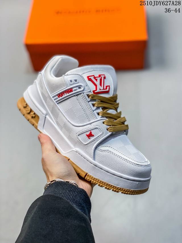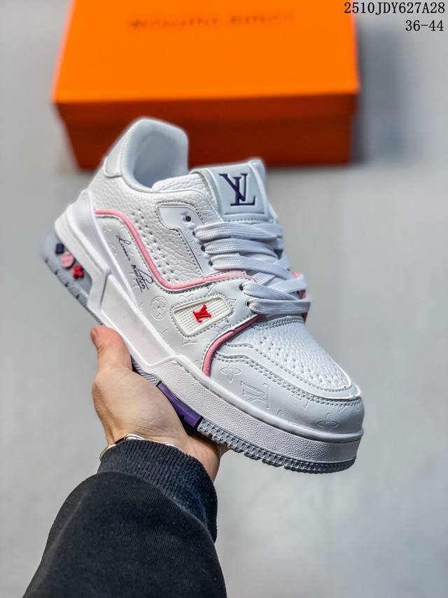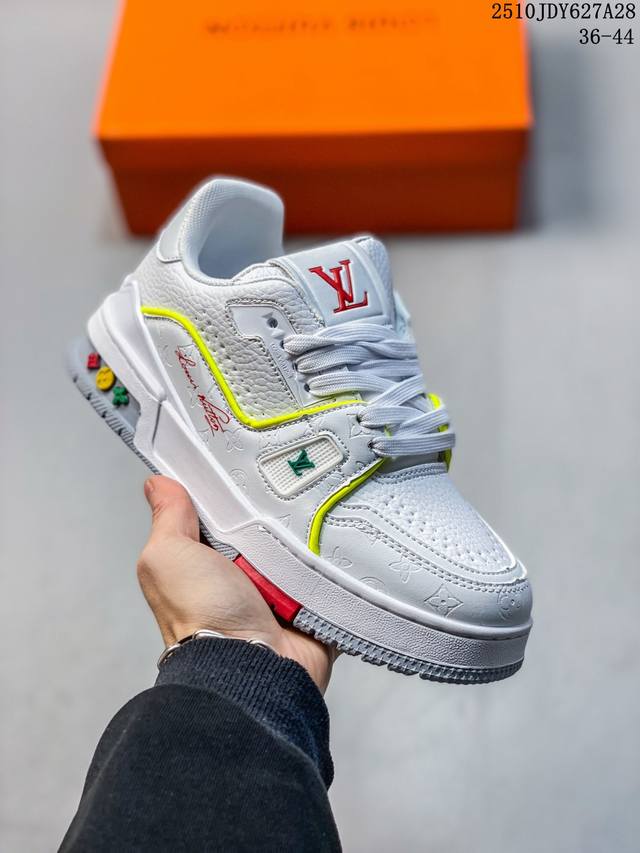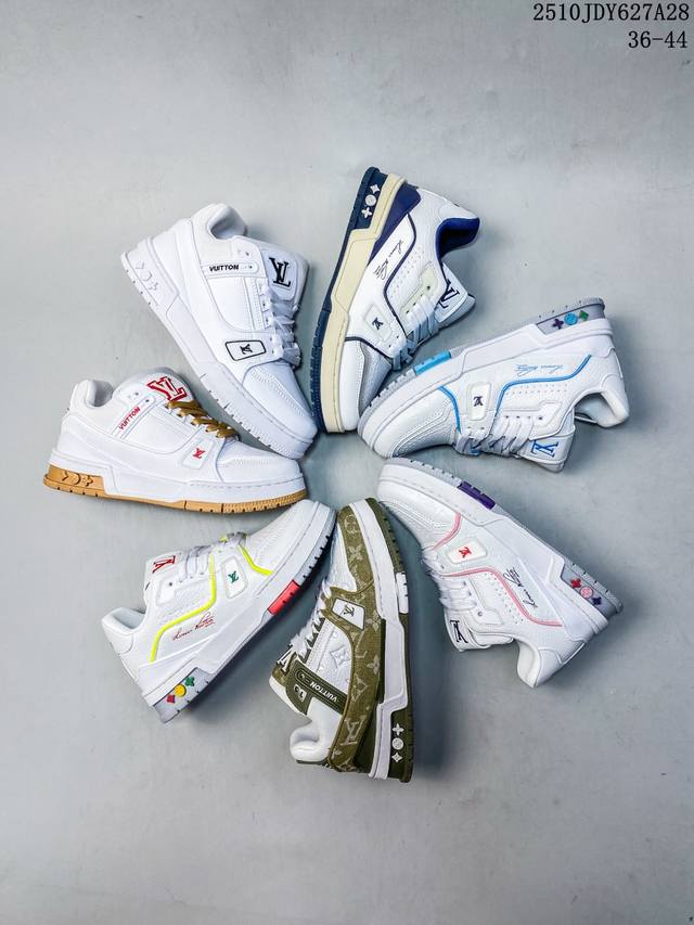 New Lv Trainer latest colorway sneakers Lv brand basketball style sneakers. This shoe is designed by artistic director Virgil Abloh. The insole is made of microfiber material and breathable British mesh. The details are consistent with the original. Size: 36-45. As shown in the picture. ID: 340Jdy1028