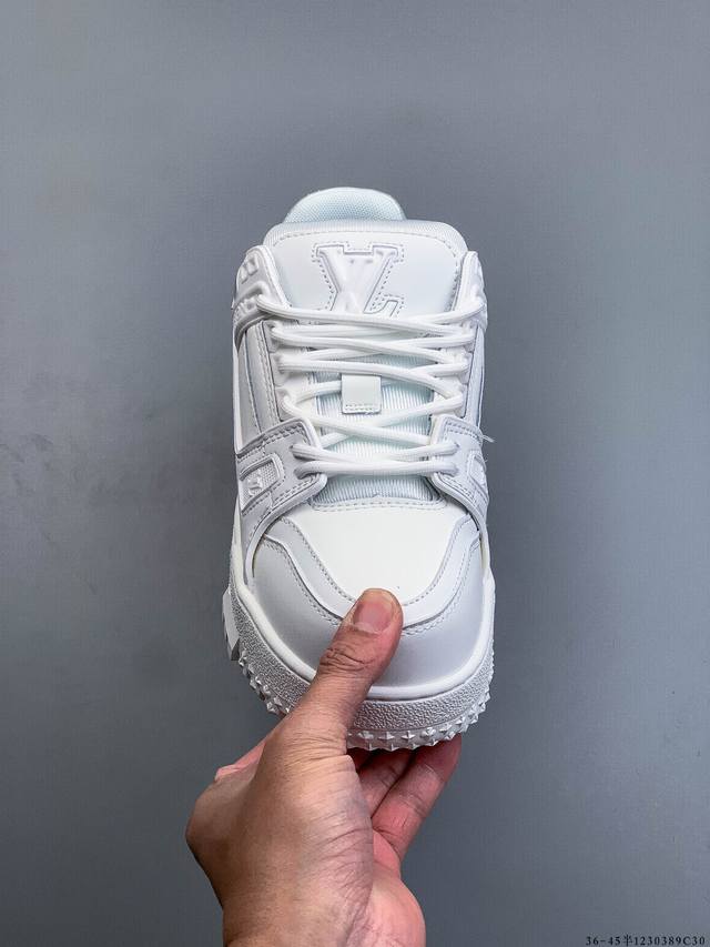 Louis Vuitton Lv Trainer Maxi Low-Top Casual Sneakers, Brand New Private Order, Shipped Through the Same Channel as Overseas Shopping Agents, Correctly Folded Shoe Box, High-End Retail Supply for Foreign Trade, Original Design, Perfect Last Restoration Achieved 98%, Exclusive Custom-Made Embossed Patent Leather Upper, TPU Outsole, Private Mold TPU Outsole, Three-Color Combination, Thick Sole for Perfect Height Increase of 4-5cm. (Ddd 1230389C30 DDD)