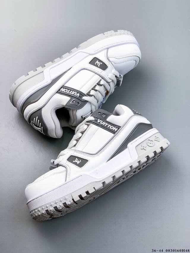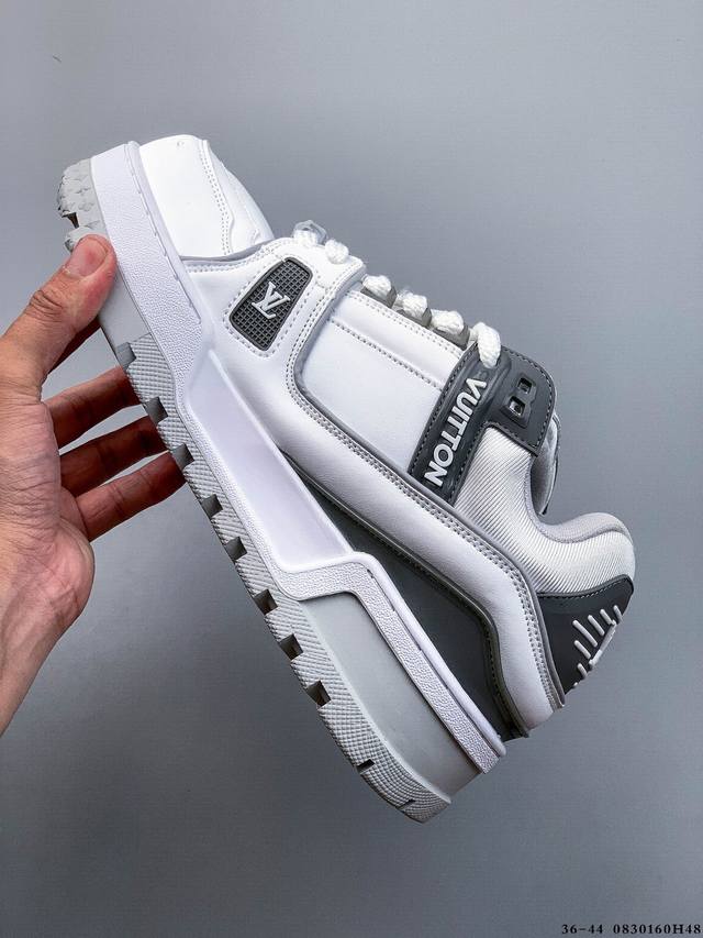 Louis Vuitton LV Trainer Maxi low-top casual sneakers. Brand new, shipped by private order. Overseas shopping agents and purchasing through the same channel. Correctly folding shoe box. High-end retail platform for foreign trade. Original quality development. Perfect last reproduction of 98%. Exclusively customized upper. Embossed patent leather TPU outsole. Three-color combination TPU outsole. Thick sole for a perfect 4-5cm height increase.