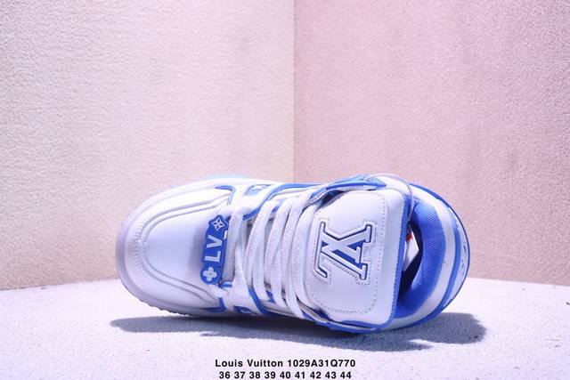 Louis Vuitton Lv Trainer sneakers, latest colorway, basketball style sneakers. Designed by Artistic Director Virgil Abloh, these shoes feature a microfiber insole, breathable British mesh details, and are identical to the original. Sizes 36-44. (