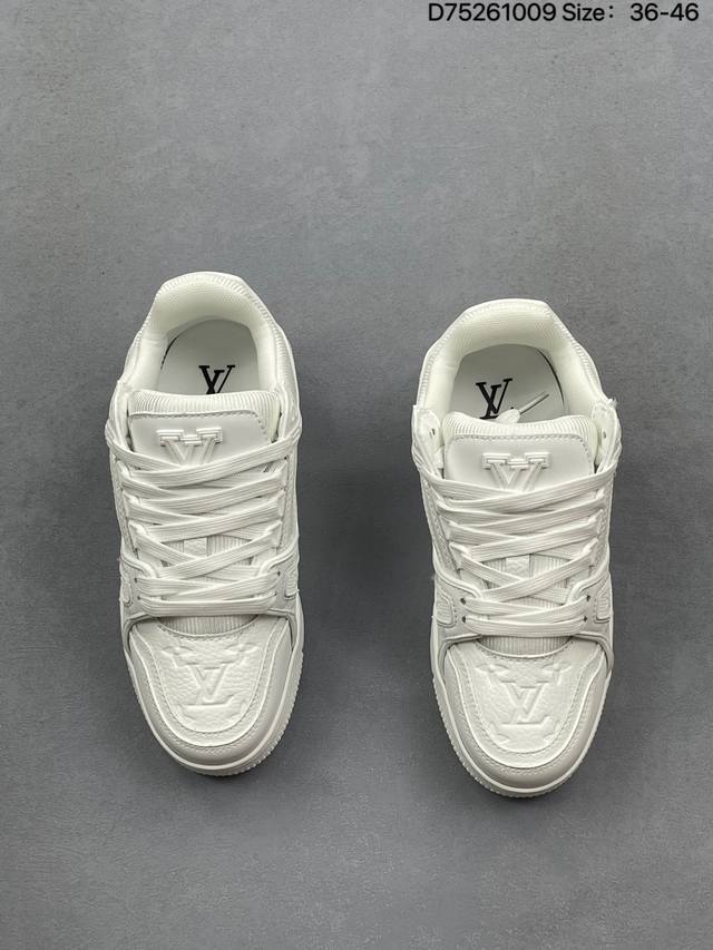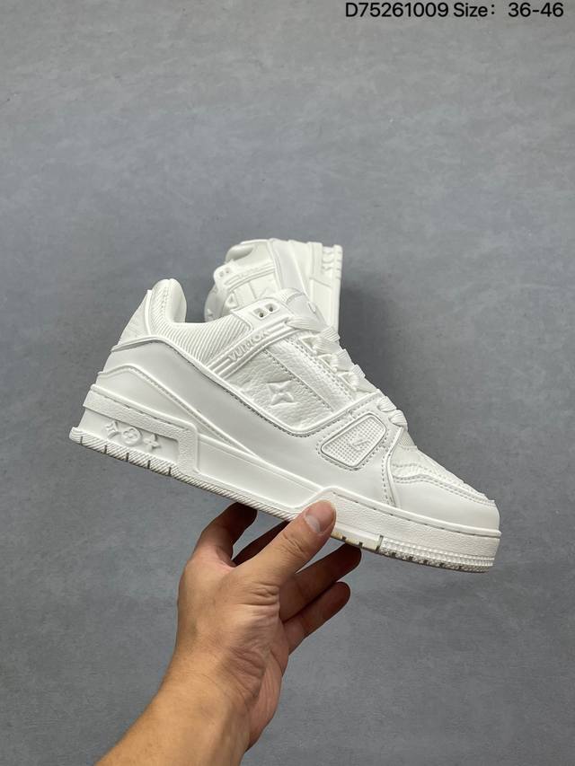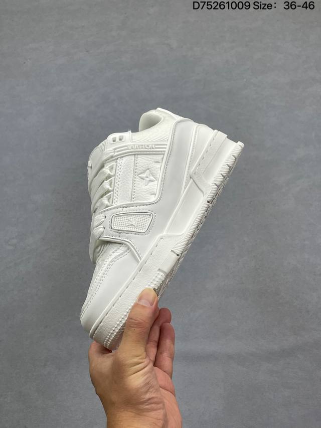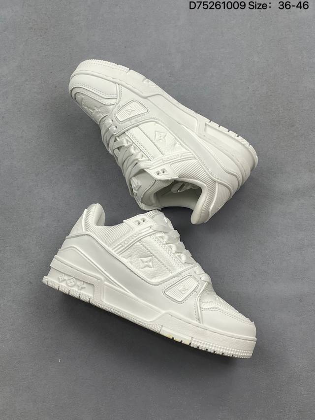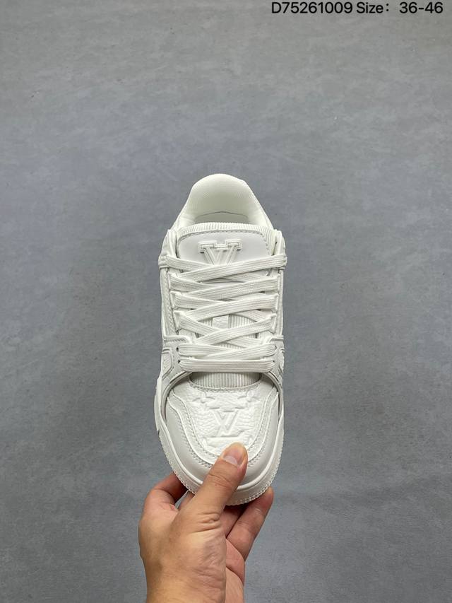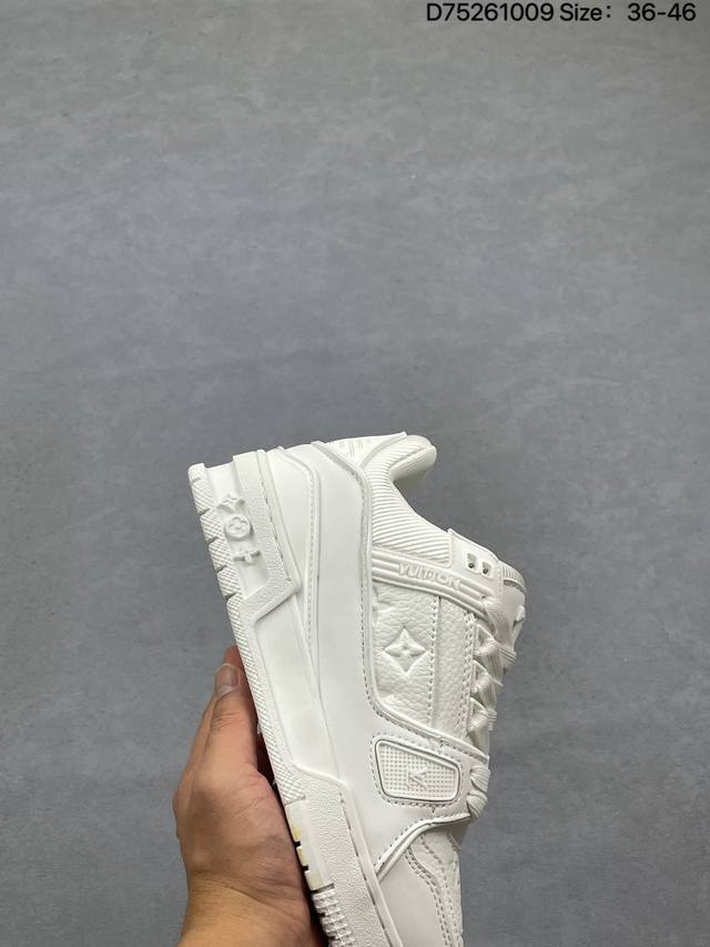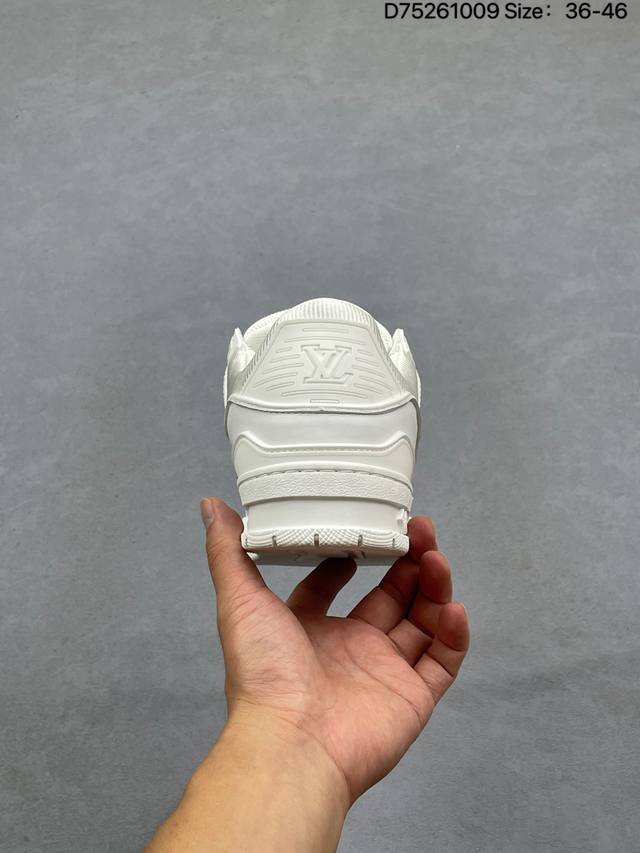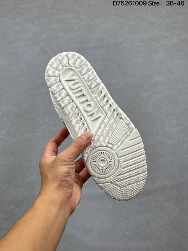 Louis Vuitton Lv Trainer sneakers, latest colorway, basketball style sneakers. Designed by Artistic Director Virgil Abloh, these shoes feature a microfiber insole and breathable British mesh details, matching the original. Size: 36-45 (as shown in picture). D7526 9