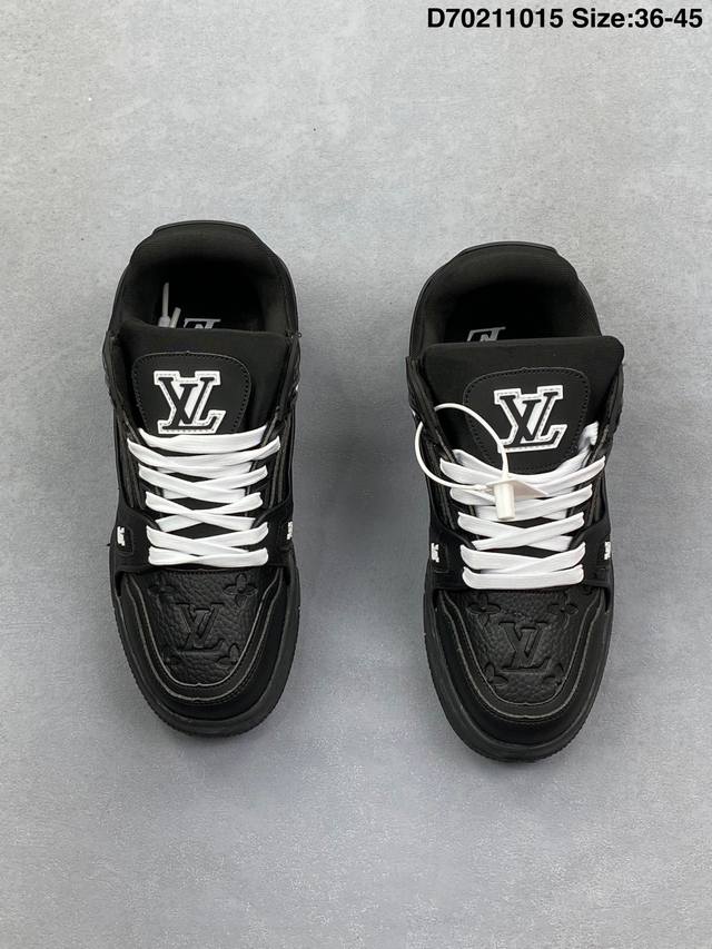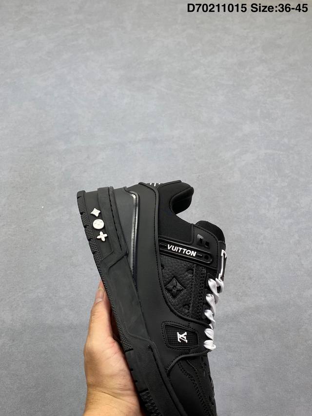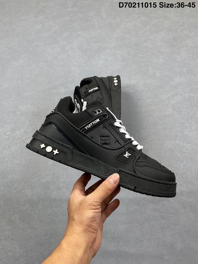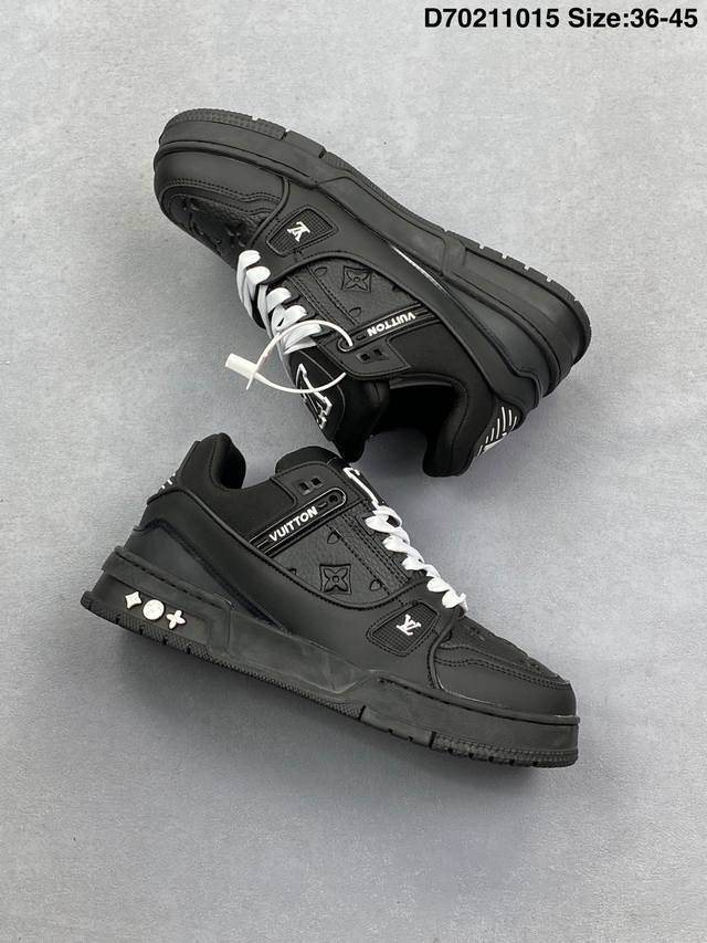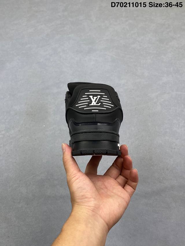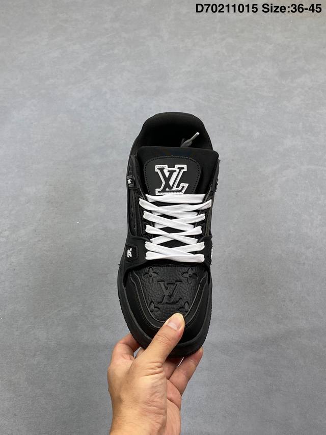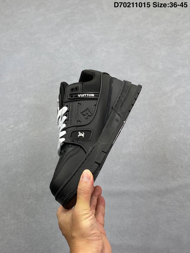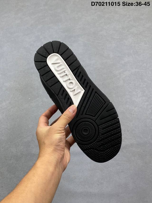 Louis Vuitton Lv Trainer sneakers, latest colorway, basketball style sneakers. Designed by Artistic Director Virgil Abloh, these shoes feature a microfiber insole and breathable British mesh details, matching the original. Size: 36-45 (as pictured). ID: D702 15