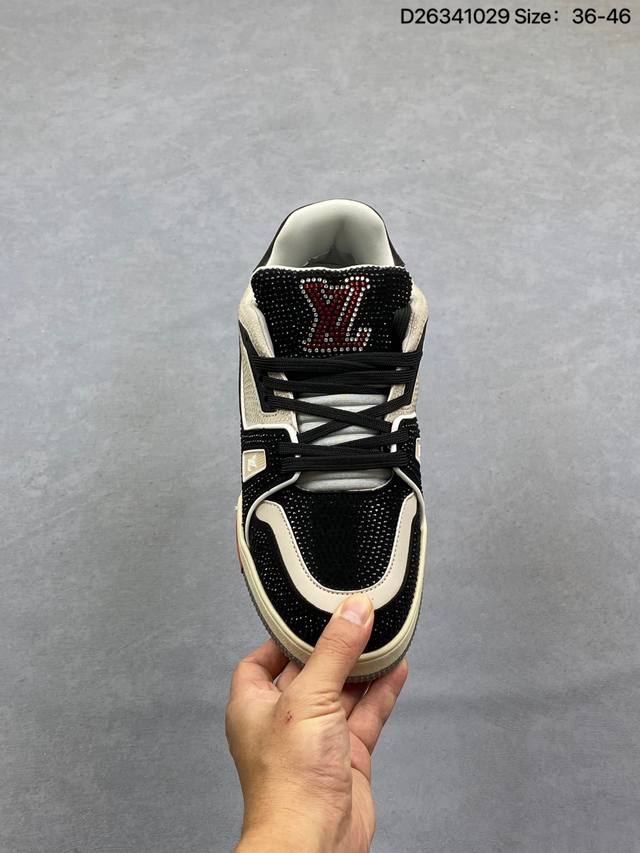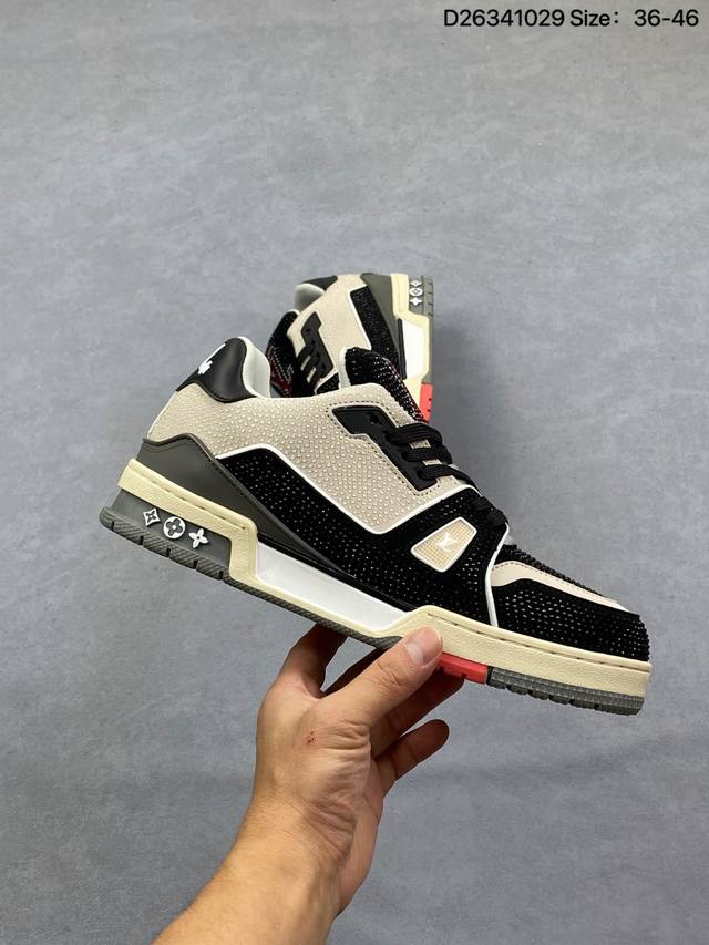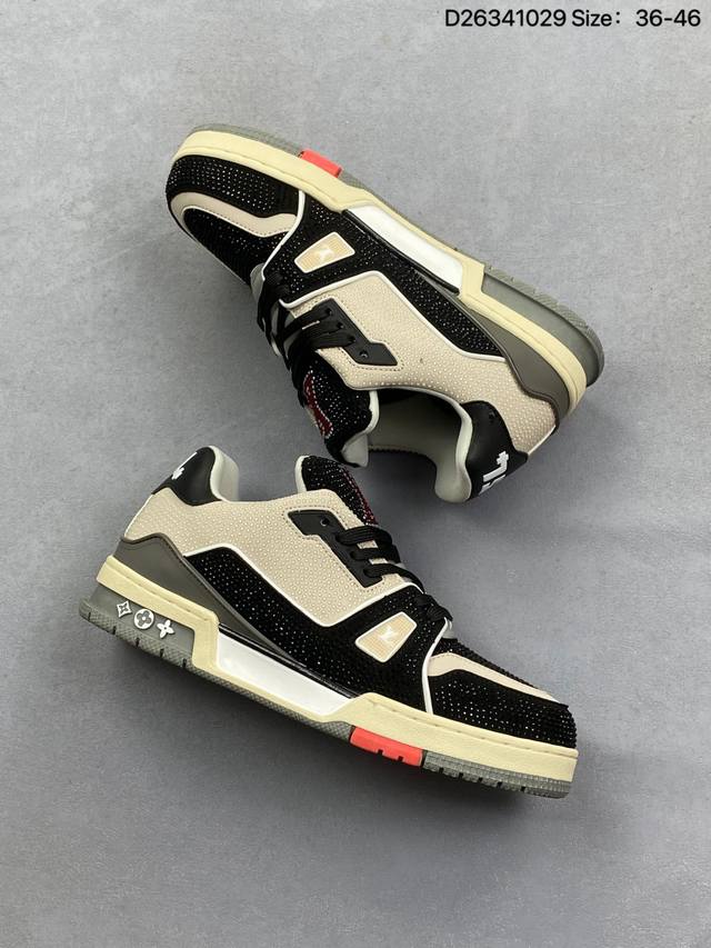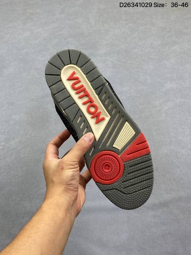 Louis Vuitton Lv Trainer sneakers, latest colorway, basketball style sneakers. Designed by Artistic Director Virgil Abloh, these shoes feature a microfiber insole, breathable British mesh fabric, and details consistent with the original. Size: 36-45. See picture. ID: D26341029