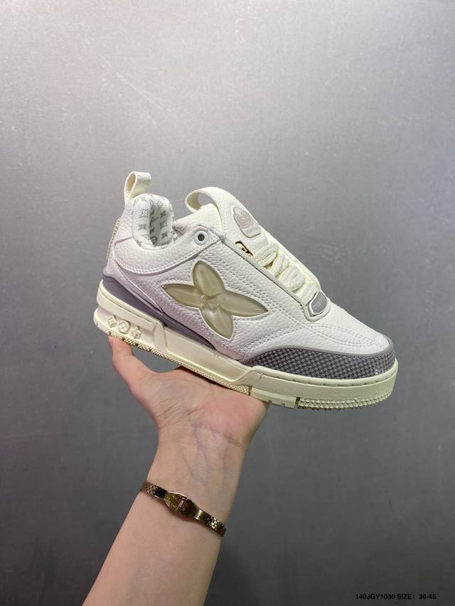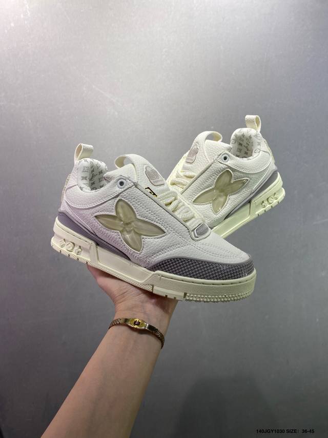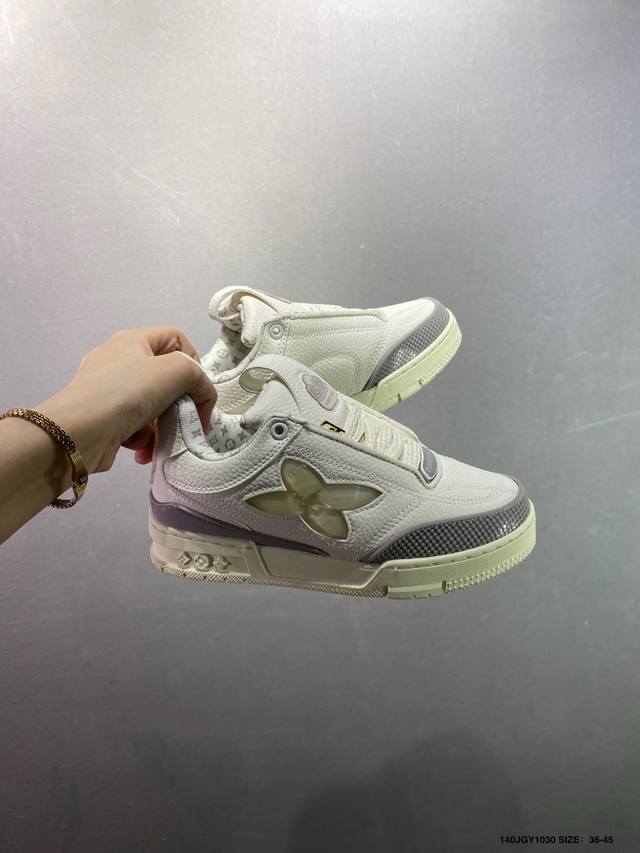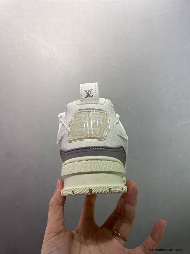 Louis Vuitton Lv Trainer sneakers, latest colorway, basketball style sneakers. Designed by Artistic Director Virgil Abloh, these shoes feature a microfiber insole and breathable British mesh details, matching the original. Size: 36-45 (as pictured). ID: Jgy1030