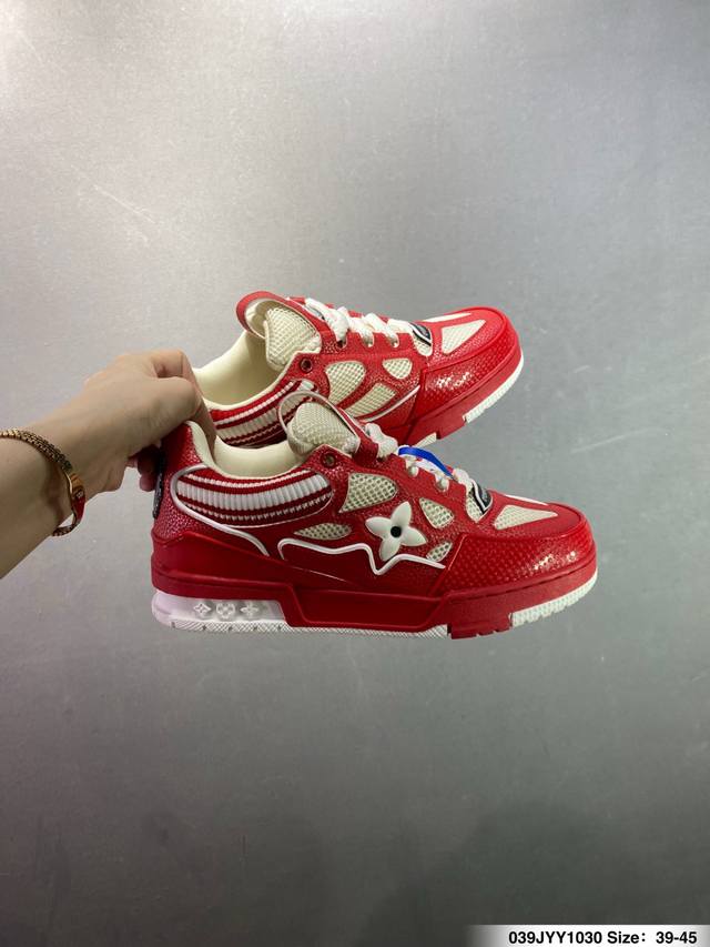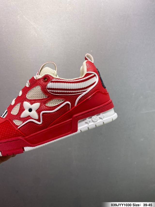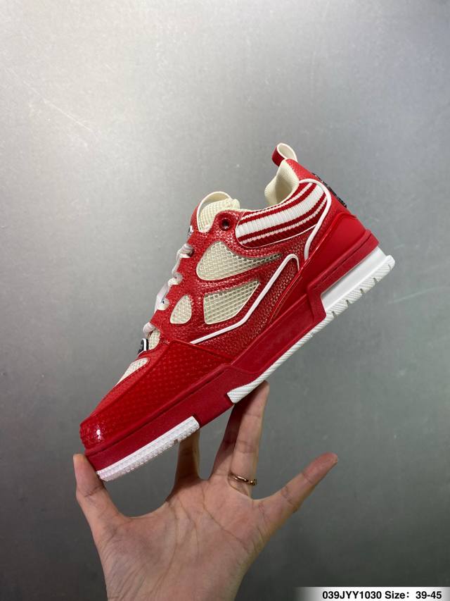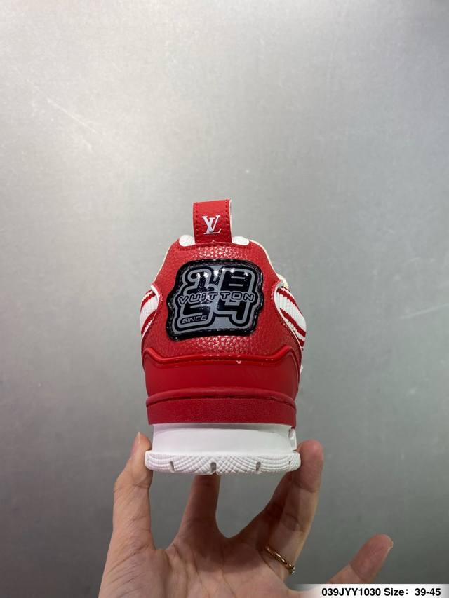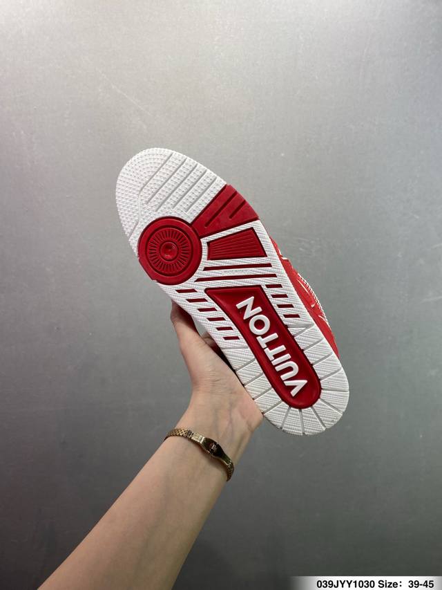 Louis Vuitton Lv Trainer sneakers, latest colorway, basketball style sneakers. Designed by Artistic Director Virgil Abloh, these shoes feature a microfiber insole, breathable British mesh fabric, and details consistent with the original. Size: 36-45 (as pictured). ID: 039Jyy1030