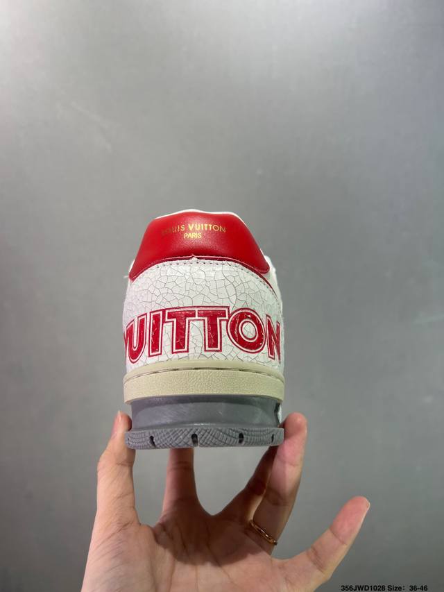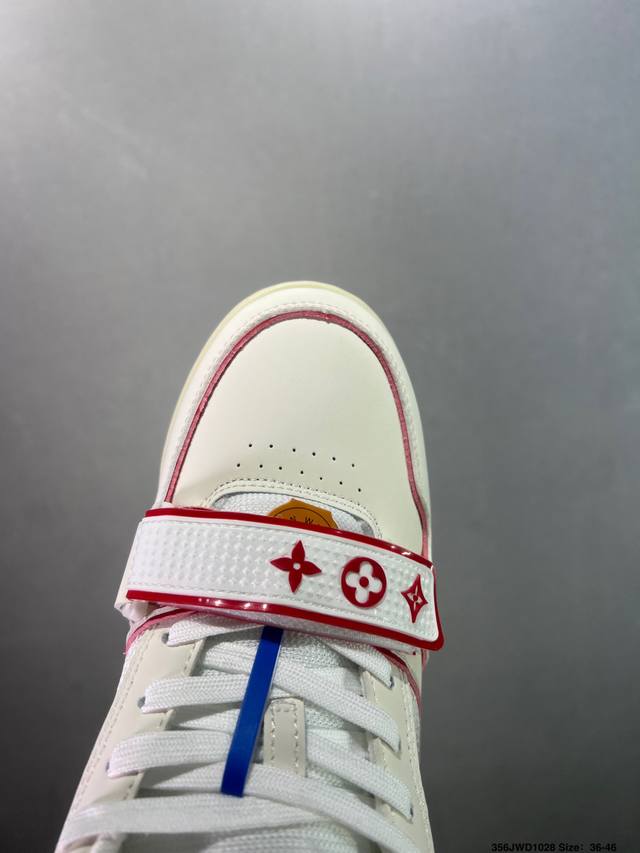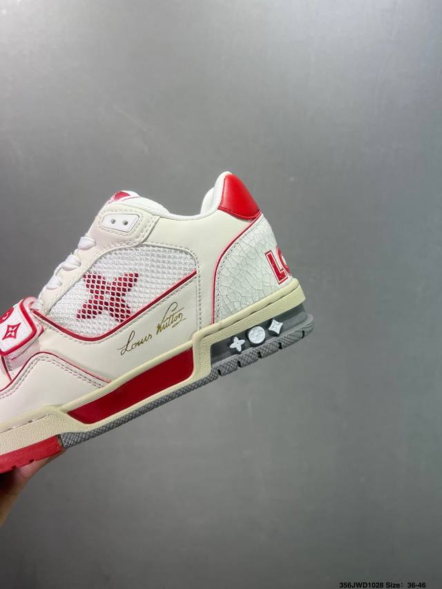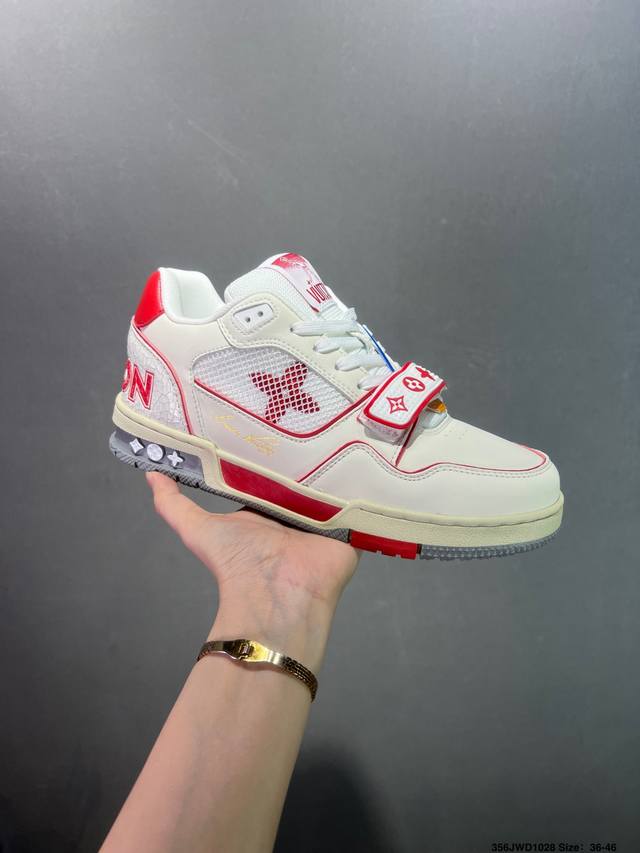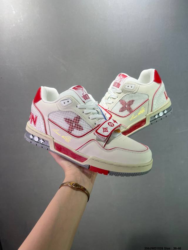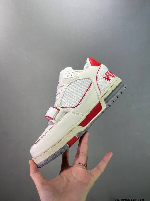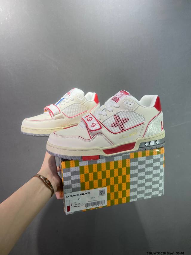Louis Vuitton Lv Trainer sneakers, latest colorway, basketball style sneakers. Designed by Artistic Director Virgil Abloh, these shoes feature a microfiber insole, breathable British mesh fabric, and details consistent with the original. Size: 36-46. ID: 356Jwd1028.