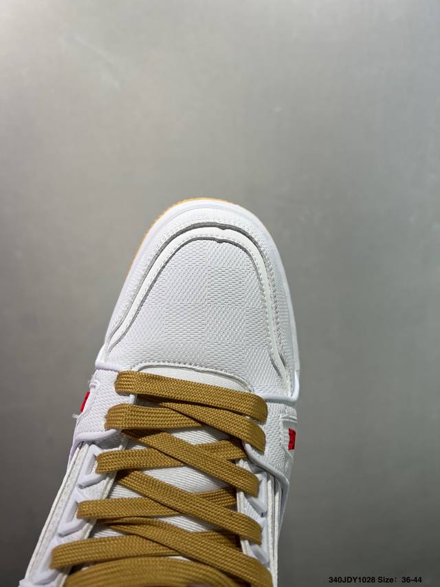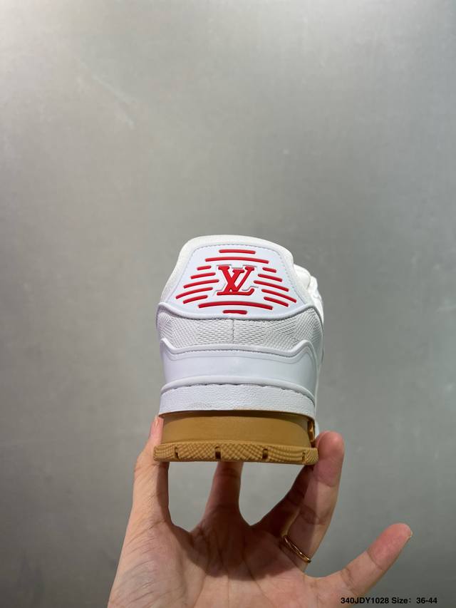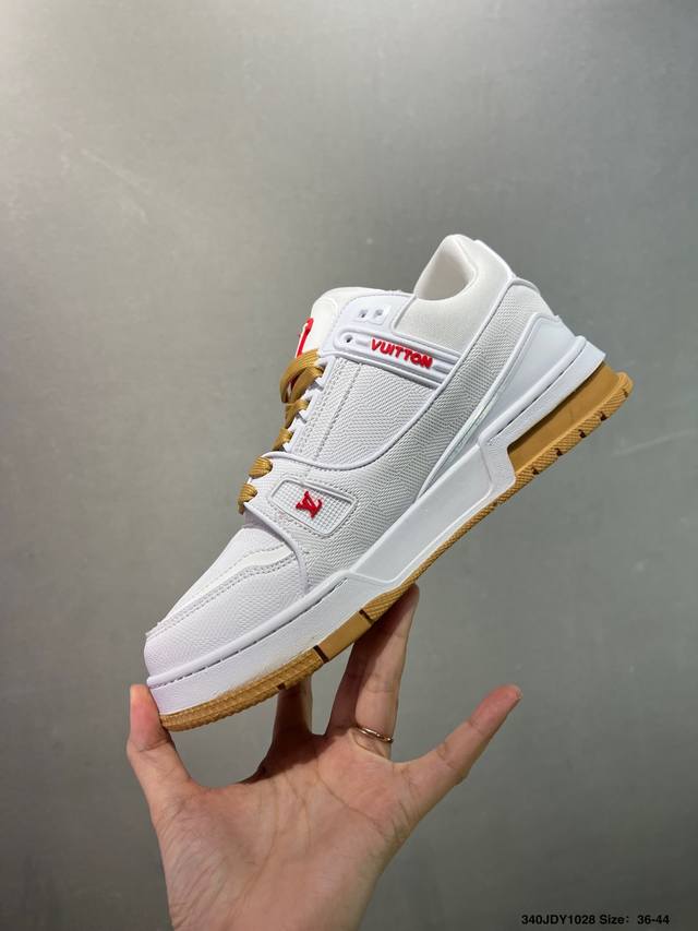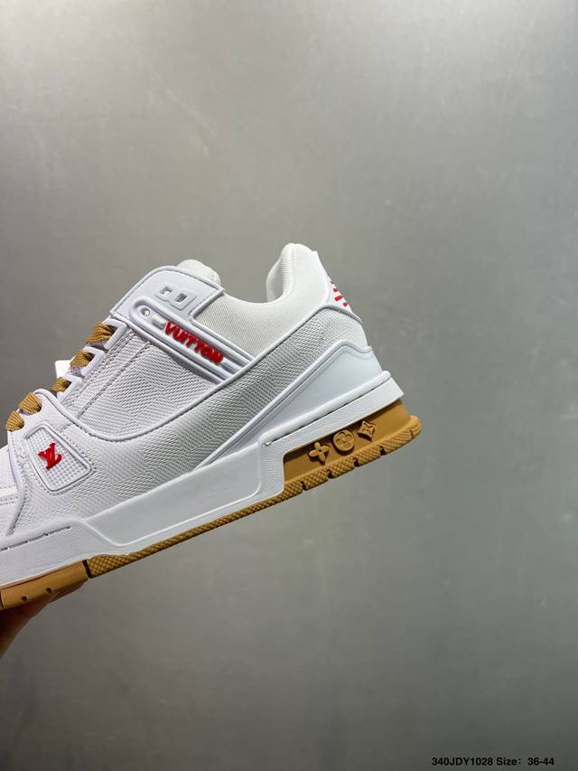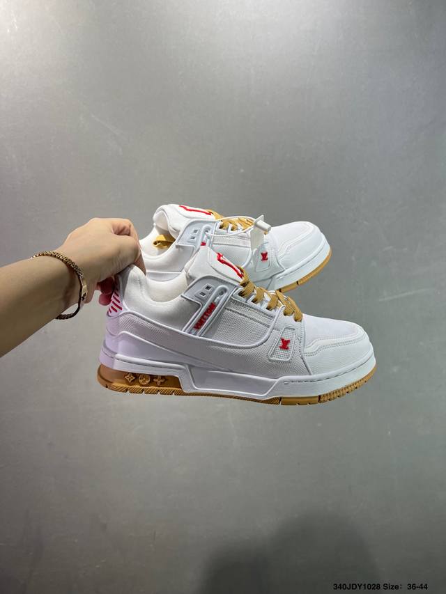 Louis Vuitton Lv Trainer sneakers, latest colorway, basketball style sneakers. Designed by Artistic Director Virgil Abloh, these shoes feature a microfiber insole, breathable British mesh fabric, and details consistent with the original. Size: 36-45 (as pictured). ID: 340Jdy1028