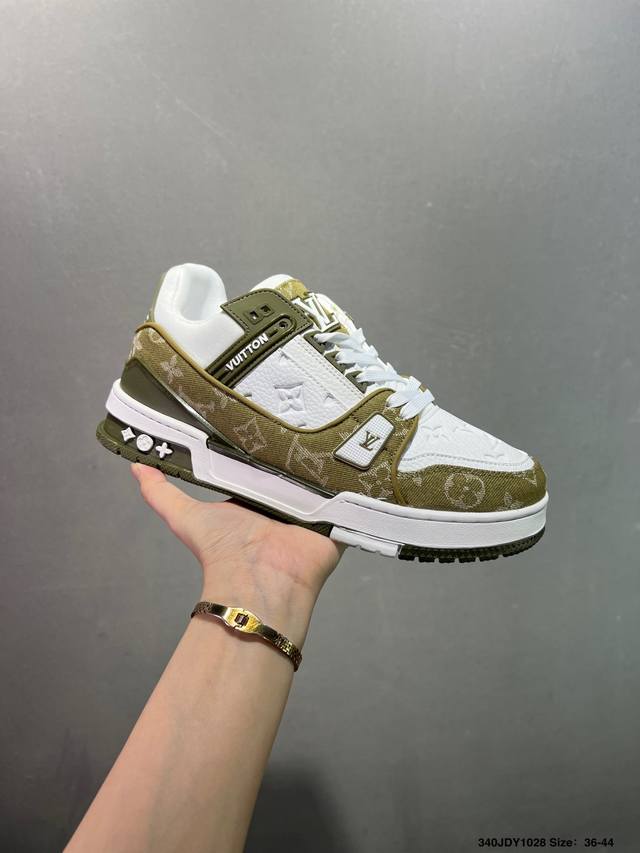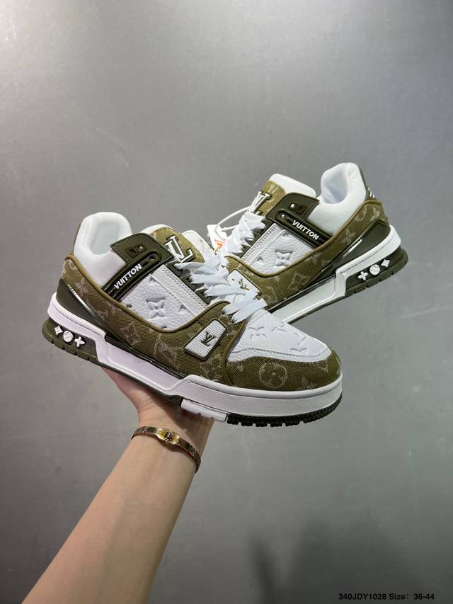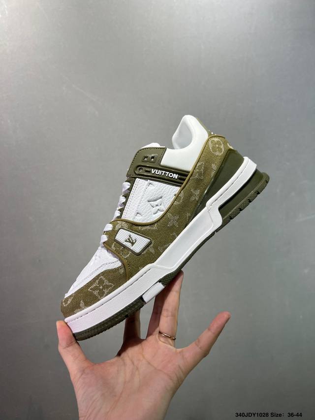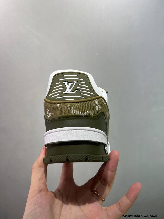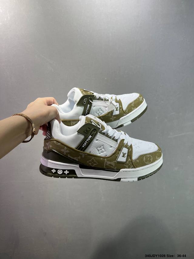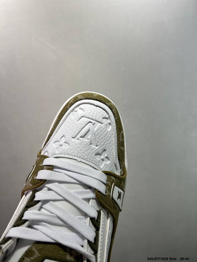Louis Vuitton Lv Trainer sneakers, latest colorway, basketball style sneakers. Designed by Artistic Director Virgil Abloh, these shoes feature a microfiber insole, breathable British mesh details, and are identical to the original. Size: 36-45 (as pictured). ID: 340Jdy1028