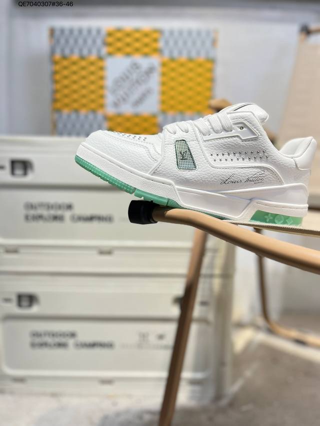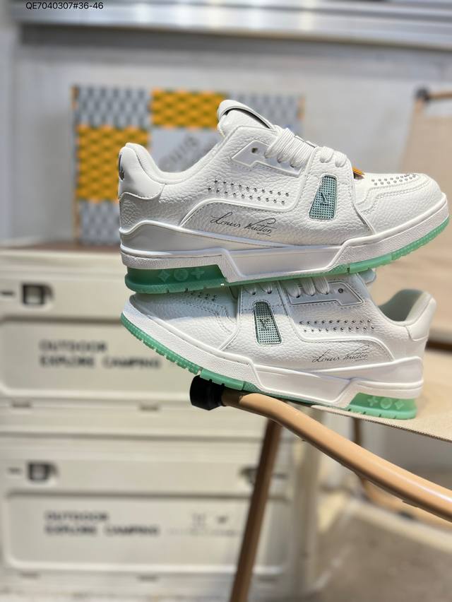 Louis Vuitton Lv Trainer sneakers, latest colorway, basketball-style sneakers. Designed by Artistic Director Virgil Abloh, these shoes feature a microfiber insole and breathable British-style mesh fabric. Qe7040307# 36-46.