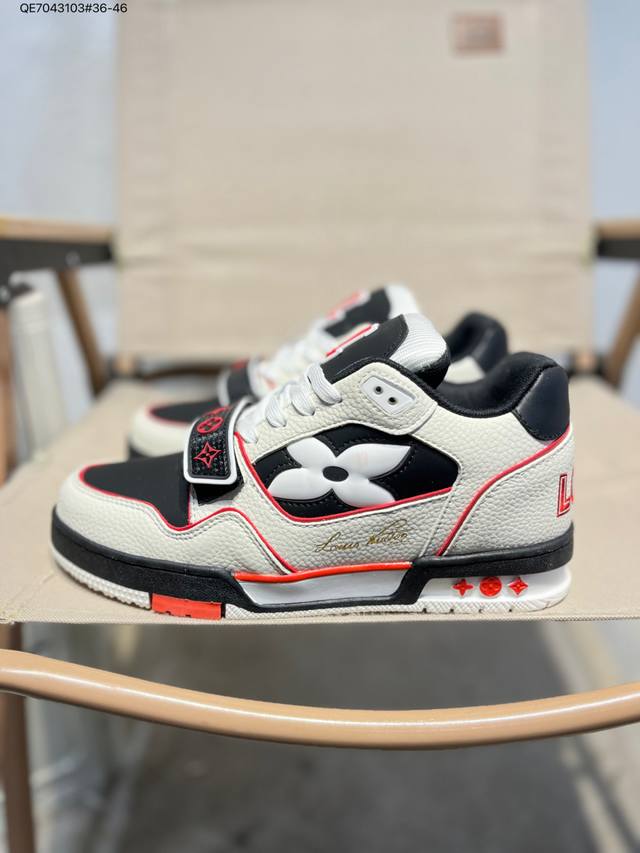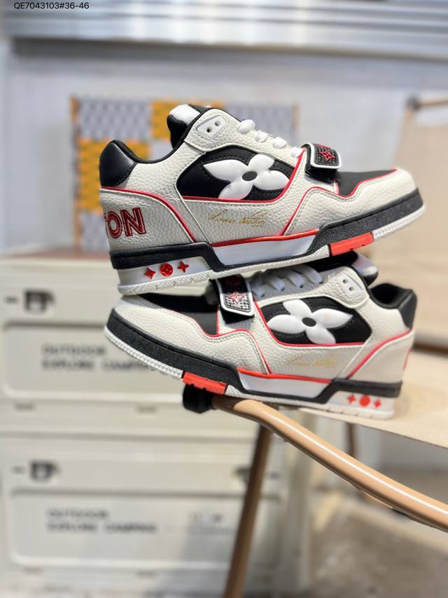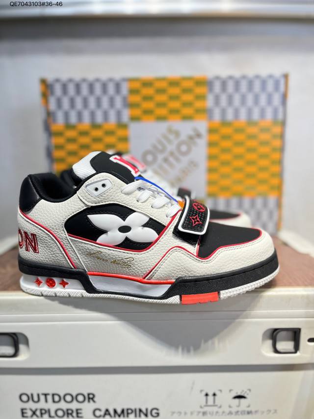 Louis Vuitton Lv Trainer sneakers, latest colorway, basketball-style sneakers. Designed by Artistic Director Virgil Abloh, these shoes feature a microfiber insole and breathable British-style mesh fabric. Qe7043103#36-46 DDD