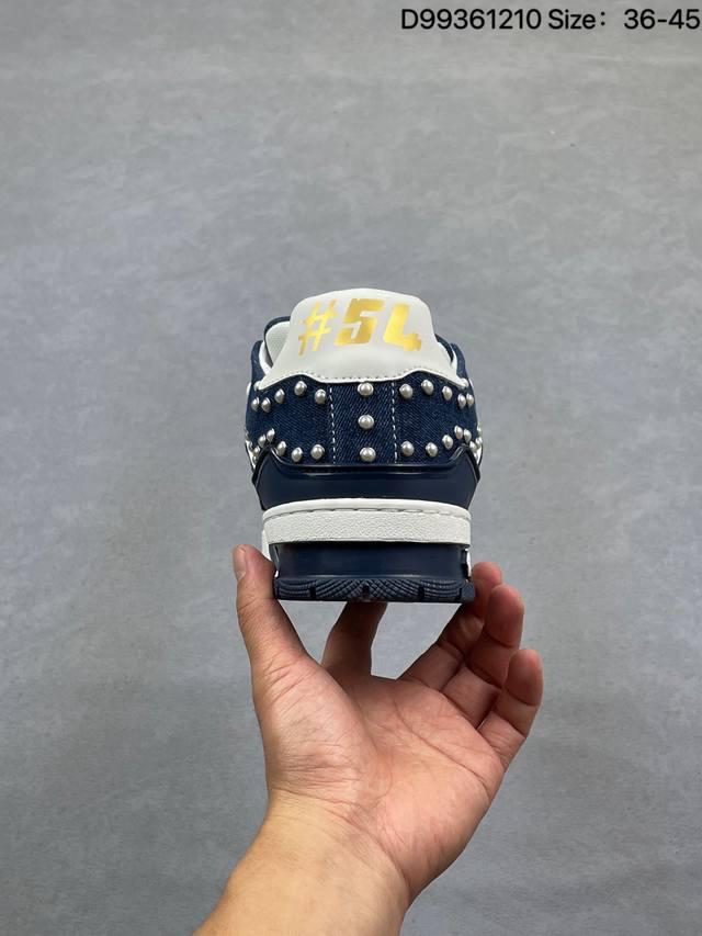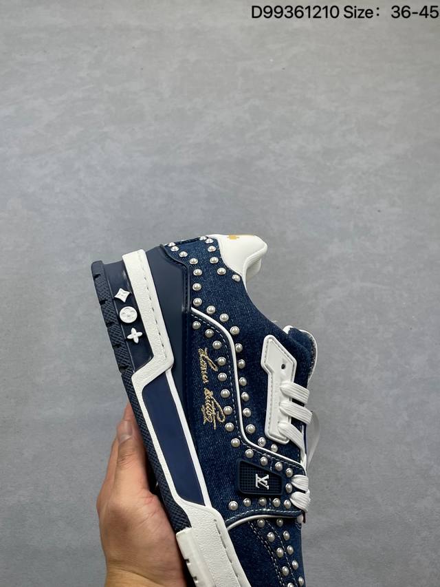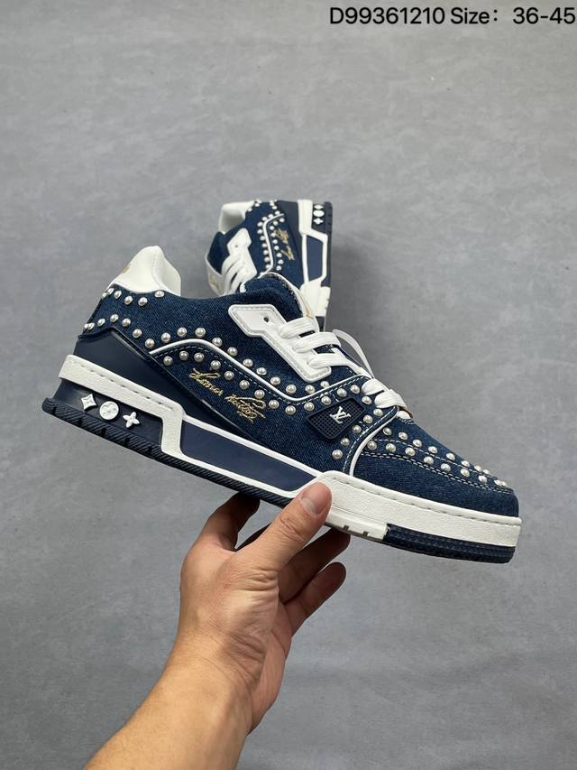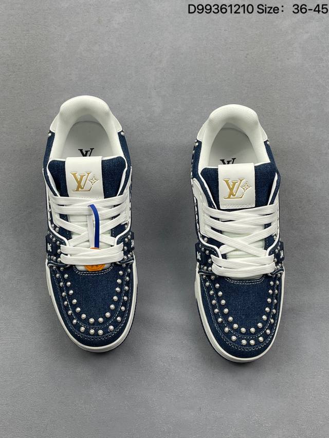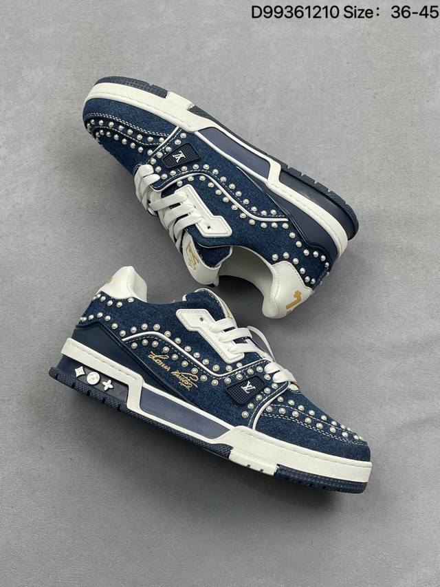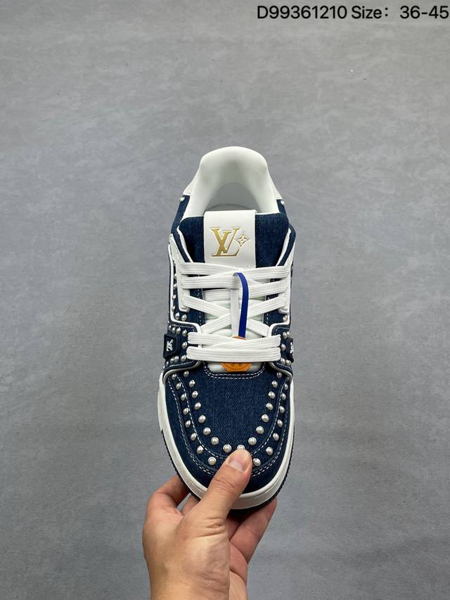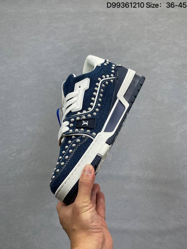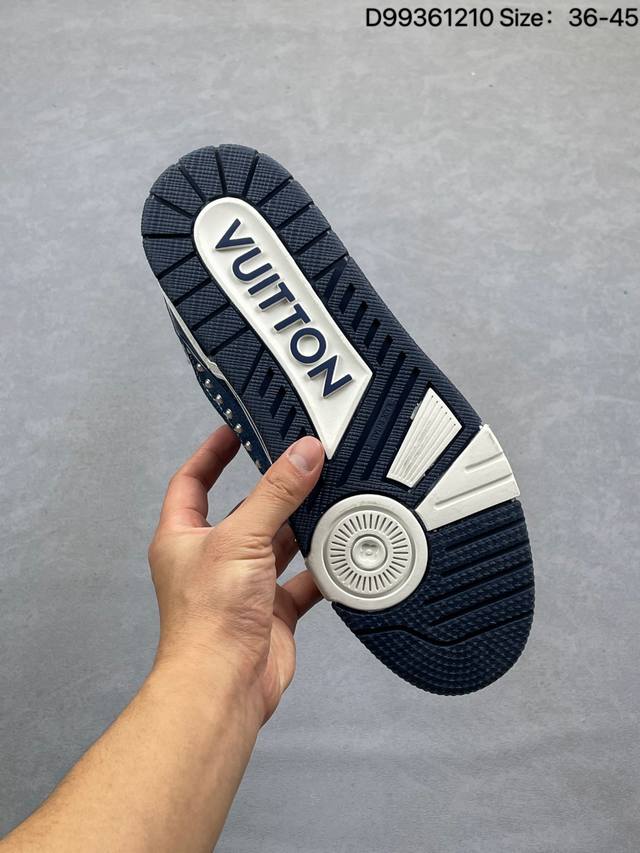 Louis Vuitton Lv Trainer sneakers, new colorway, basketball style sneakers. Designed by Artistic Director Virgil Abloh, these shoes feature a microfiber insole, breathable British mesh fabric, and details consistent with the original. Size: 36-45. ID: D99361210