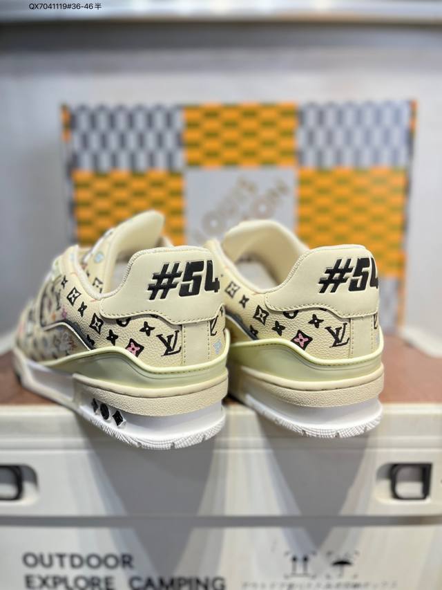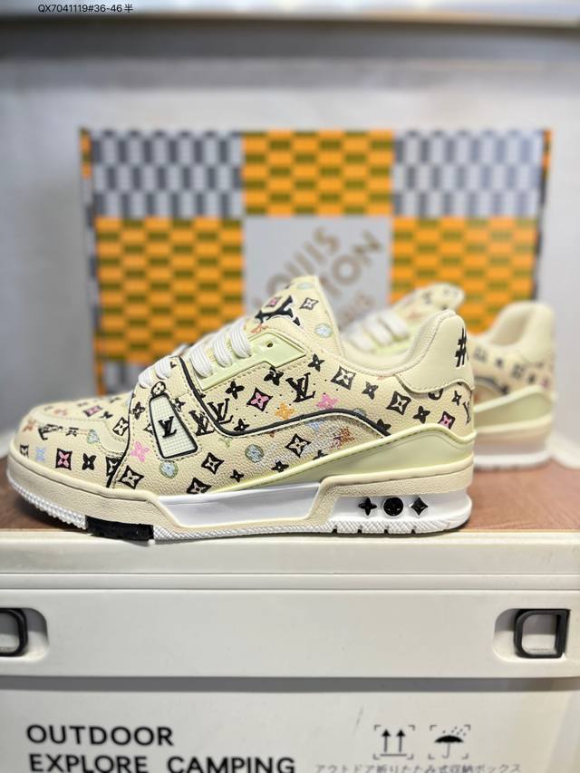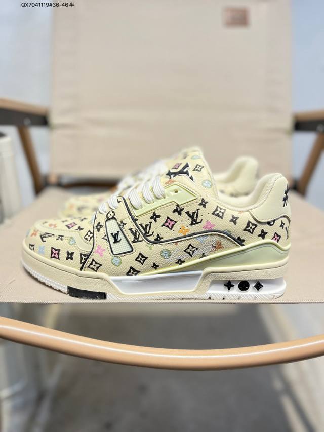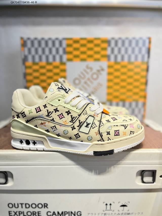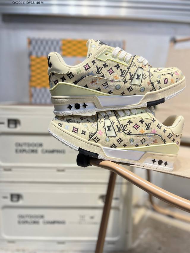 Louis Vuitton Lv Trainer sneakers, new colorway, basketball style sneakers. Designed by Artistic Director Virgil Abloh, these shoes feature a microfiber insole and breathable British-style mesh fabric. Qx7041119 #36-46 half size.