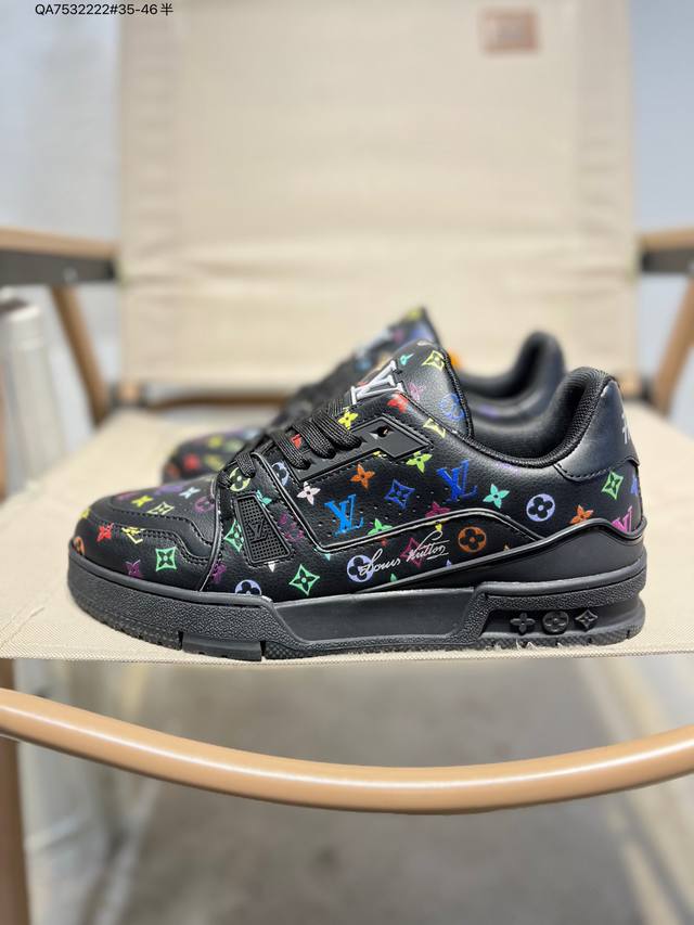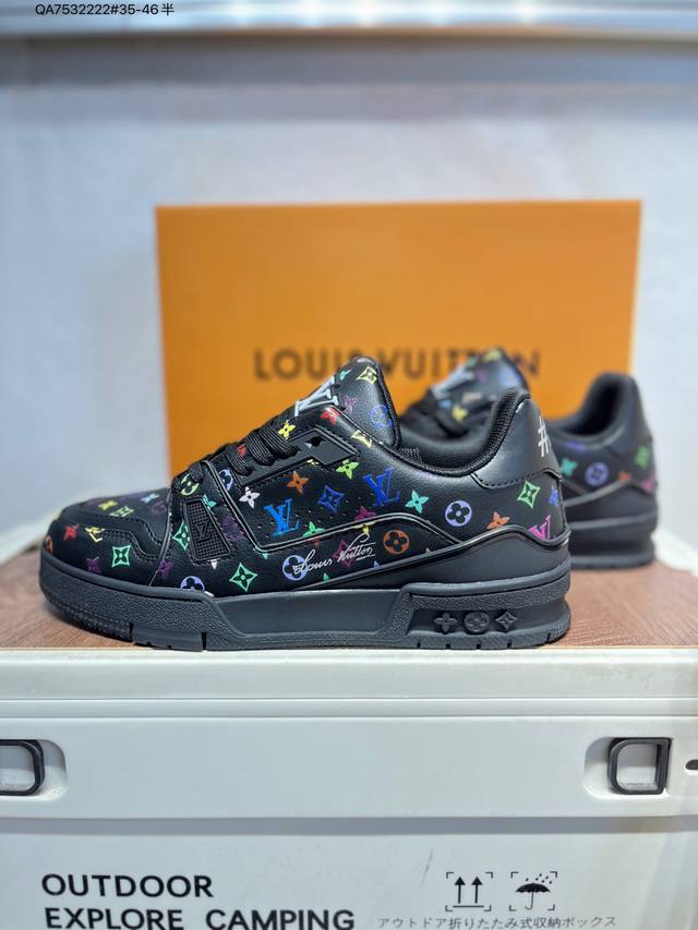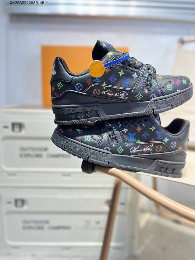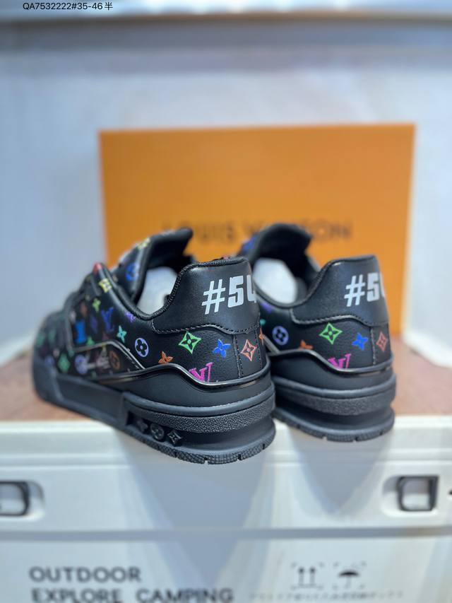 Louis Vuitton Lv Trainer sneakers, new colorway, basketball style sneakers. Designed by Artistic Director Virgil Abloh, these shoes feature a microfiber insole and breathable British-style mesh fabric. (Qa7532222# Sizes 35-46)