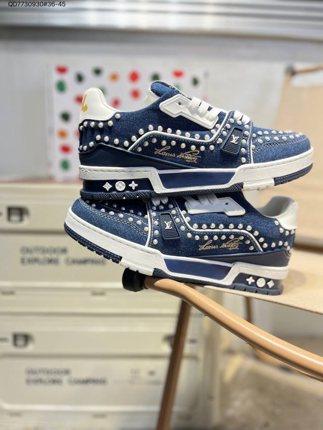 Louis Vuitton Lv Trainer sneakers Ddd New colorway Lv Trainer sneakers, basketball style sneakers. Designed by Artistic Director Virgil Abloh, these shoes feature a microfiber insole and breathable British-style mesh fabric. Qd7730930#36-45 DDD
