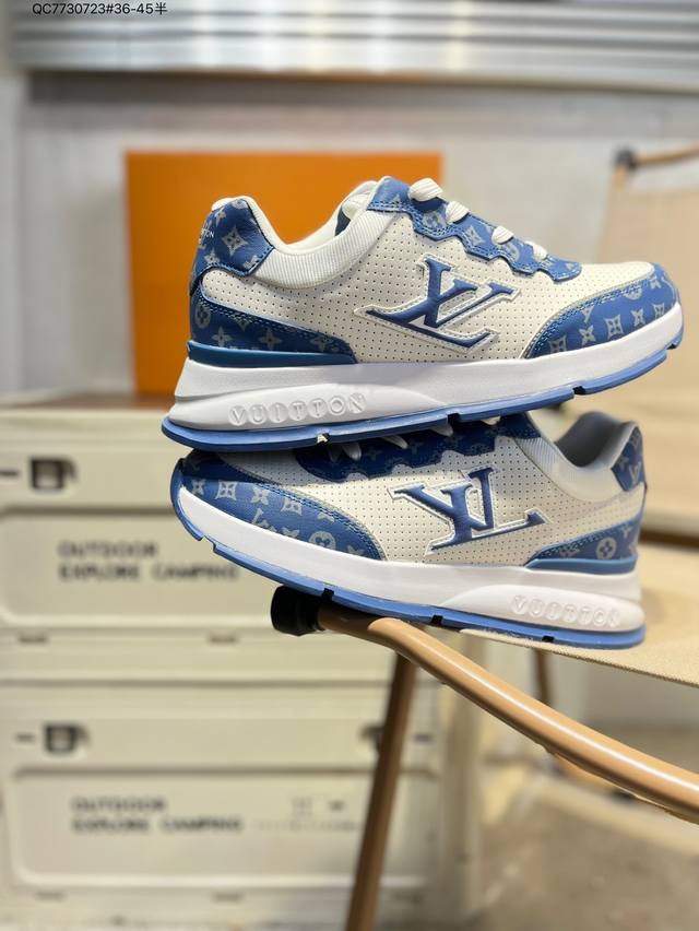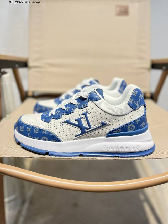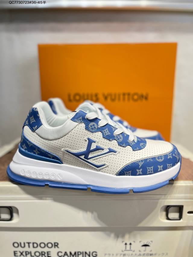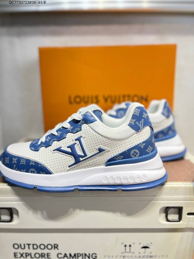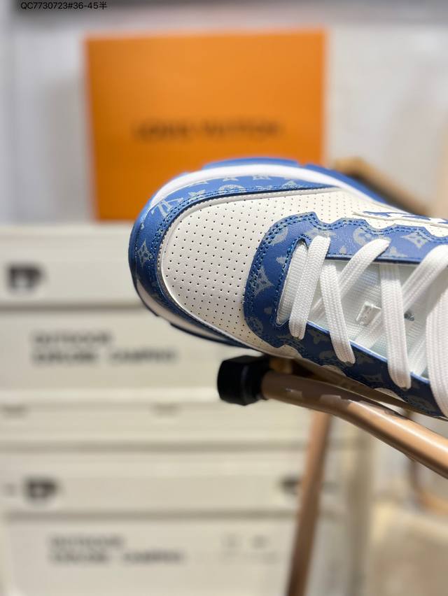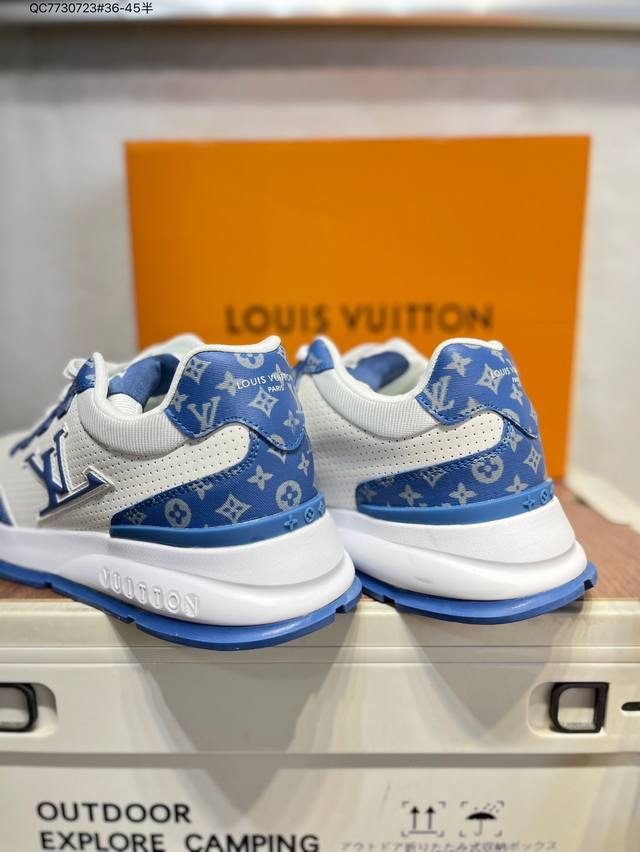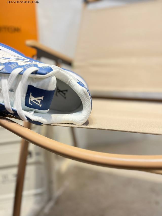 Louis Vuitton men's and women's shoes come in a sturdy drawer gift box. Made with a lychee-grained split-leather upper and grained split-leather upper, the insole features soft-feeling EVA inserts and an external TPR glossy, color-blocked sole. This Louis Vuitton Trainer Sneaker Low is a low-top, retro, versatile, casual, and athletic basketball sneaker from the century-old French luxury brand, LV Louis Vuitton, Paris. 0589366 Qc7730723 #36-45 Half