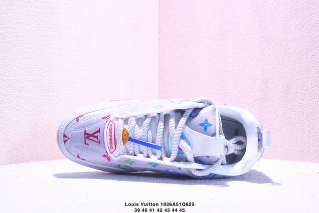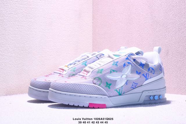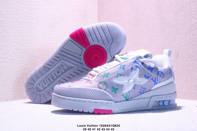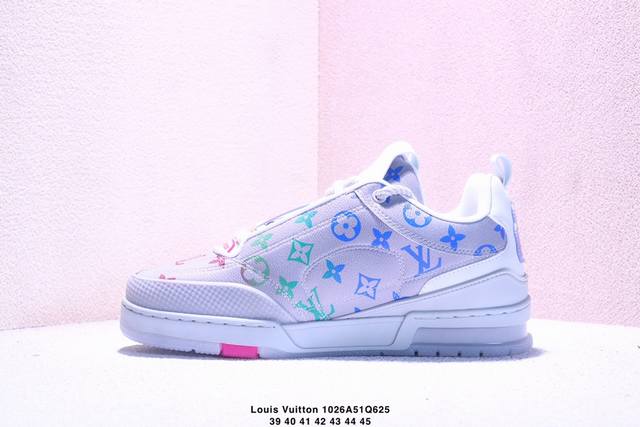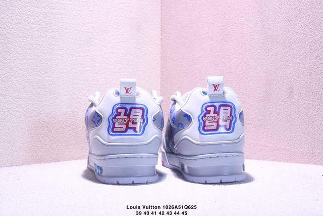 Louis Vuitton men's and women's shoes come with a sturdy drawer gift shoebox. The upper is made of a combination of pebbled fiber leather and grained cowhide. The insole features soft EVA material, and the outer TPR glossy color-blocked sole. Louis Vuitton Trainer Sneaker Low, a century-old luxury brand from Paris, France. Low-top retro versatile casual sports basketball shoes. Type: Men's and women's shoes. Sizes: 36 37 38 39 40 41 42 43 44 45. Xm1026Q625