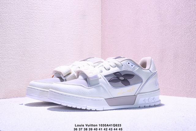 Louis Vuitton Remarque Low - Off-white and brown four-leaf clover design, made in Guangdong, high-quality and cost-effective. Features a leather upper, lambskin lining, odor-free glass insole, hollow glue construction, and a durable rubber outsole. New Louis Vuitton Remarque Low classic low-top lace-up casual sports sneakers. Type: Men's and Women's Shoes. Item Number: [Item Number Missing] Sizes: 36-45 (Half Sizes Available). [Item Number Missing] Xm1030Q633